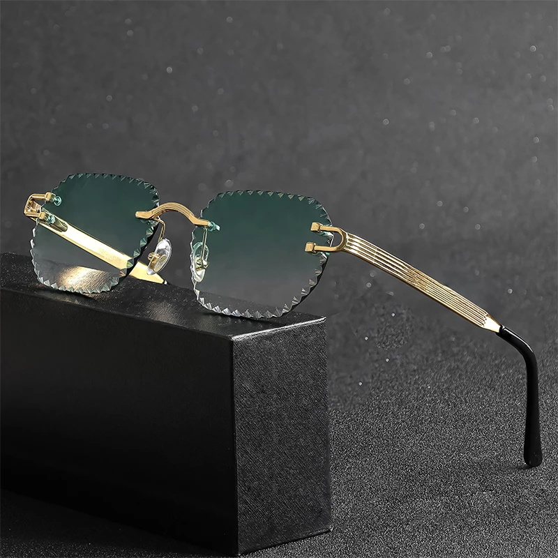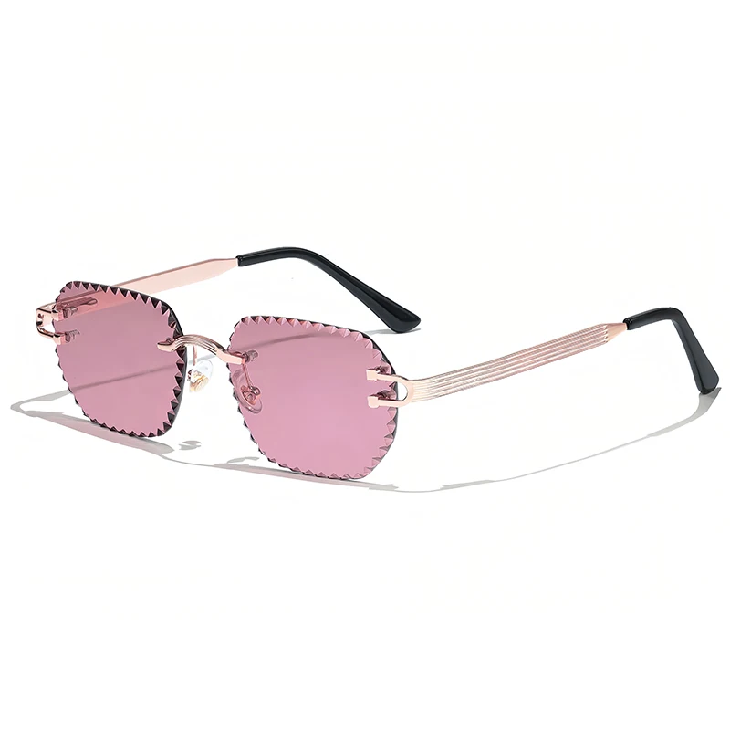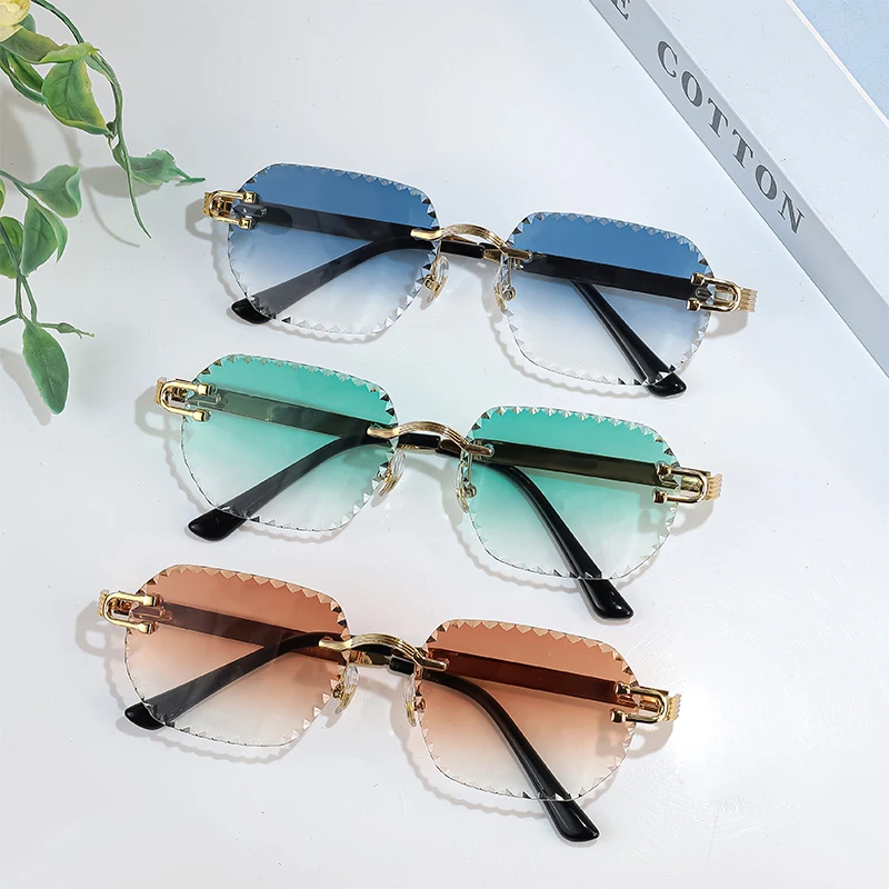 HBK Unisex Frameless Sunglasses Black PC Alloy Pink Blue Gradient Lens Polygon Rimless Design New Street Fashion Men Women