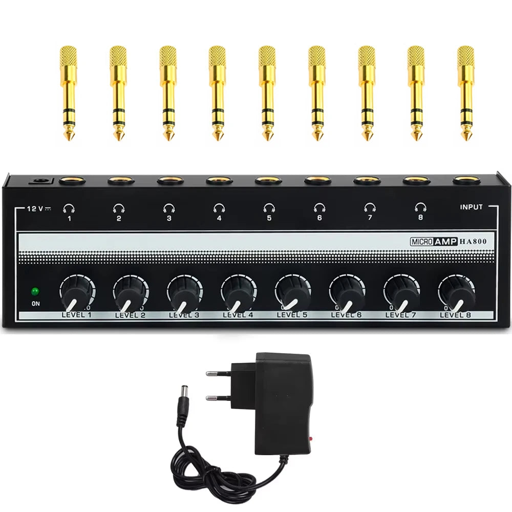 Headphone Amplifier 8 Channels Stereo Audio Amplifier AMP Ultra-Compact Portable Mini Amplifier with Rotary Button 6.35mm Jack