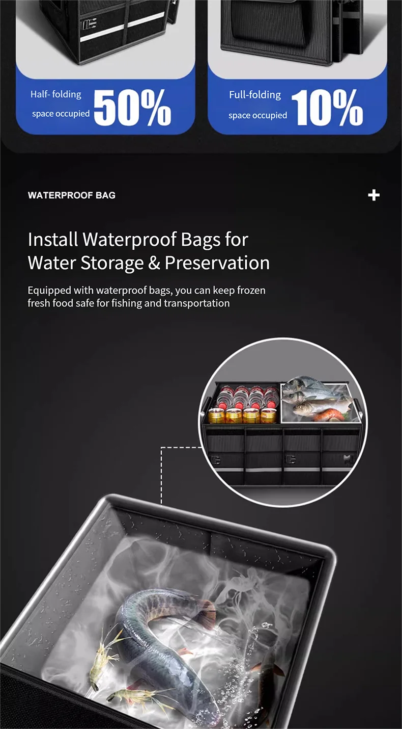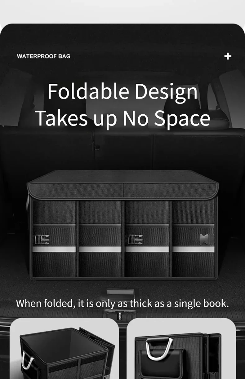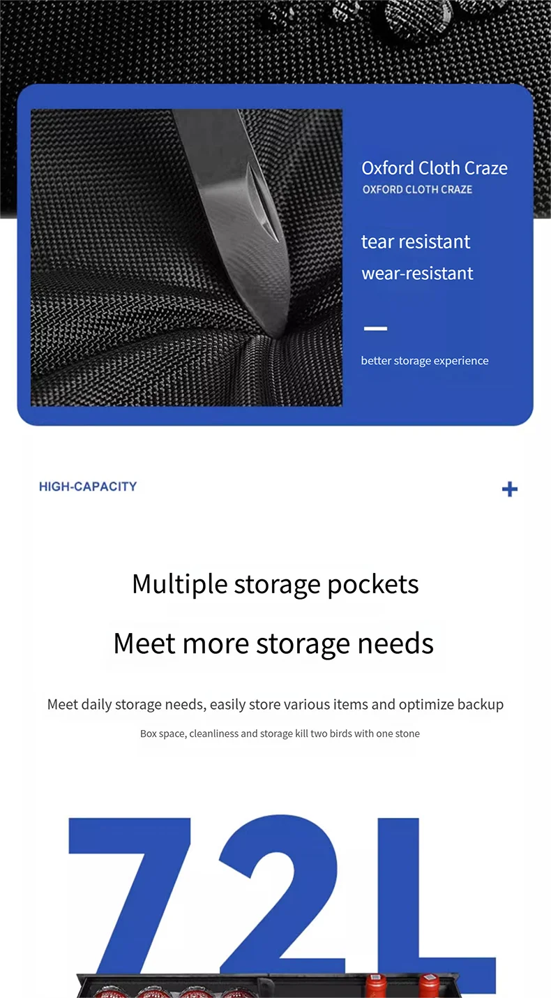 2. 72L Large Capacity: The fully unfolded size of the product is 65x35x30cm, and only one storage box is needed to meet the daily storage needs of the car trunk