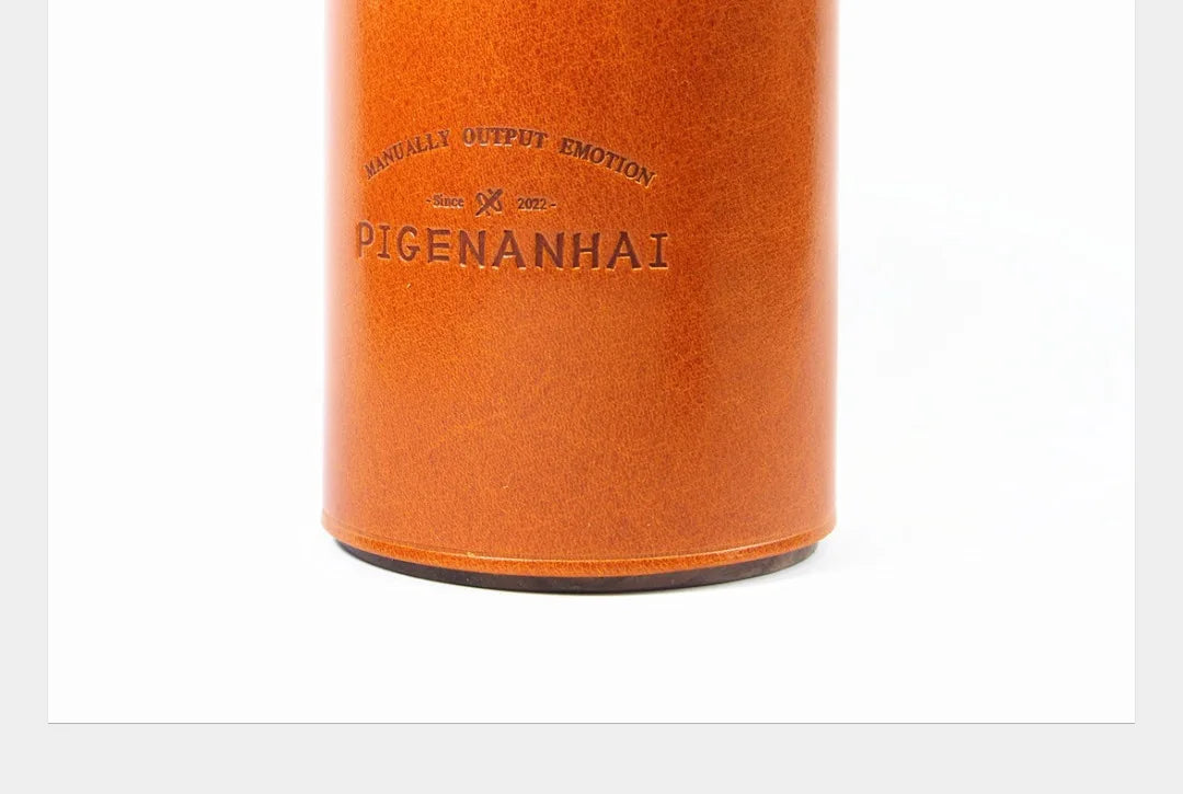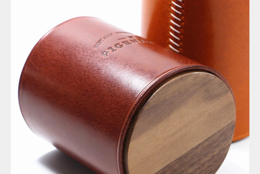 High End Handmade Genuine Leather Solid Wood Pen Holder Cowhide Office Stationery Storage Pen Holder Desk Organizer Holder