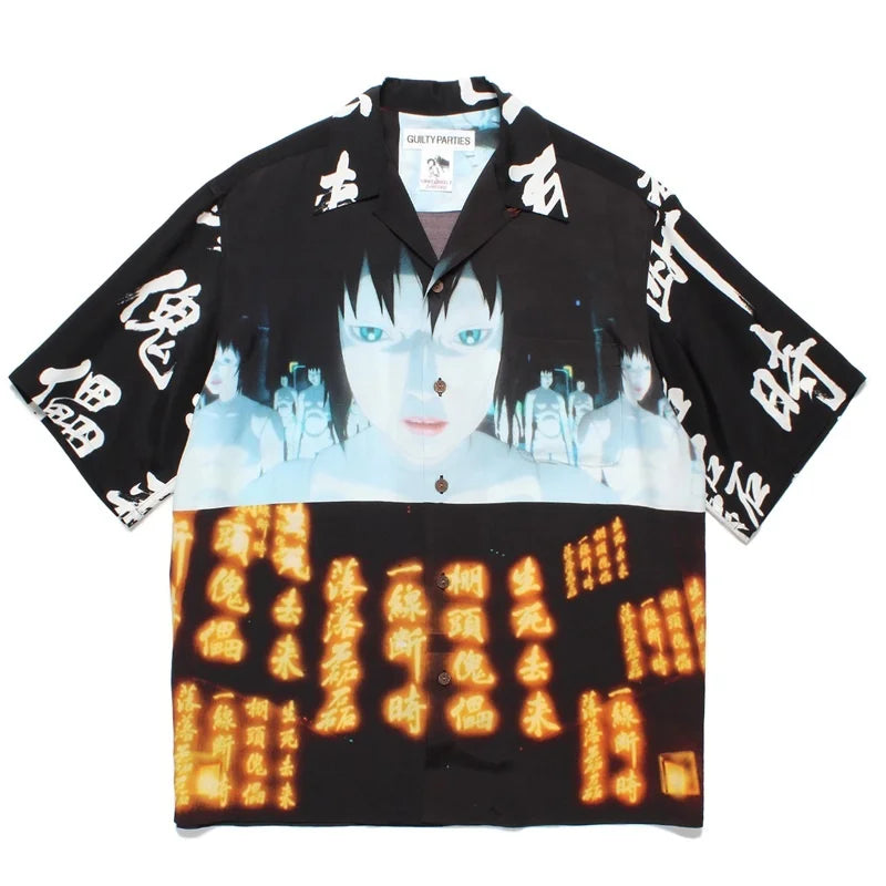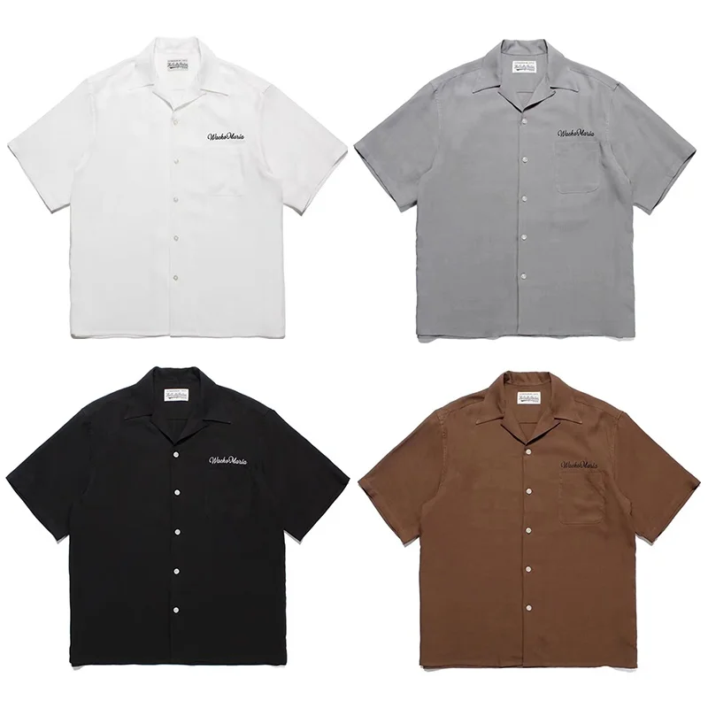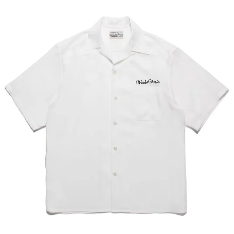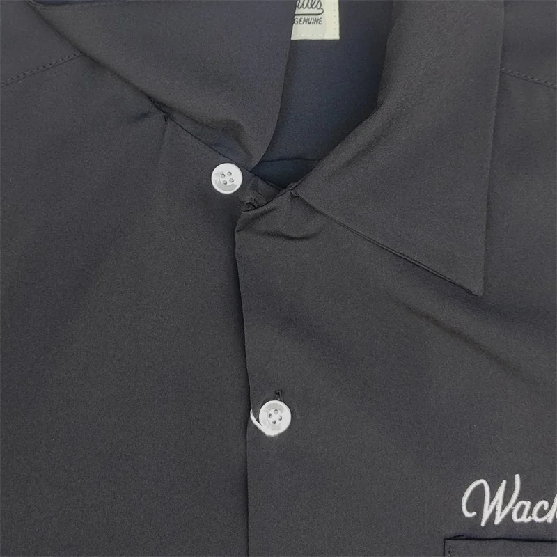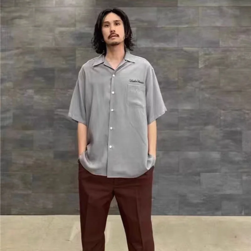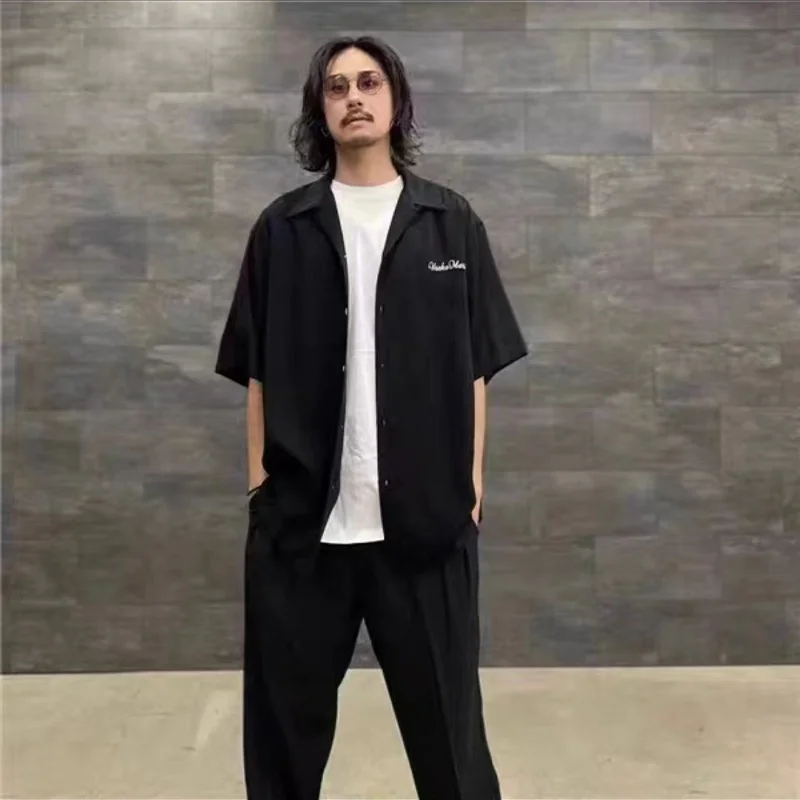 High-end Summer WACKO MARIA Solid Color Cursive wackomaria Embroidery Logo Simple Hawaii Short Sleeve Shirt