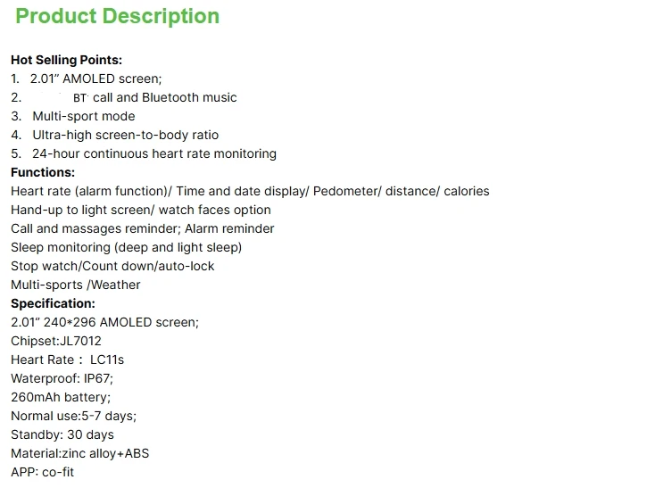 function: Passometer,Calendar,Alarm Clock,Sleep Tracker,Answer Call,Heart Rate Tracker