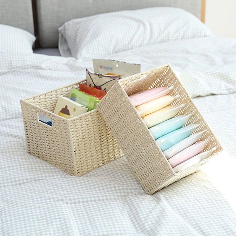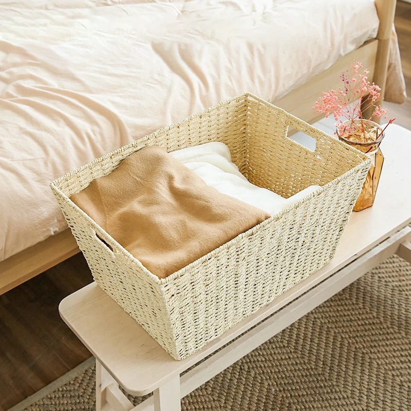 Home Woven Storage Basket Large Capacity Laundry Baskets Sundries Wardrobe Closet Organizer Clothes Toys Decor Panier Rangement