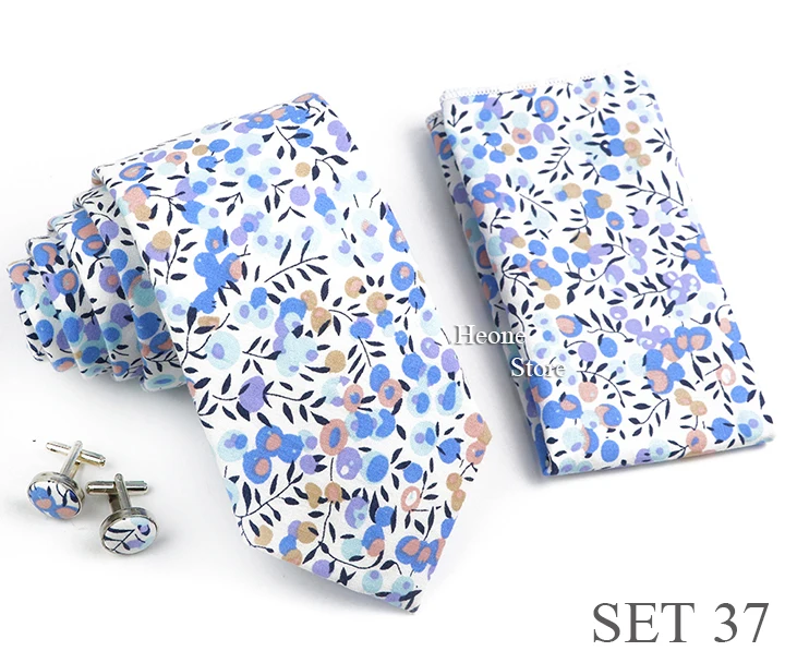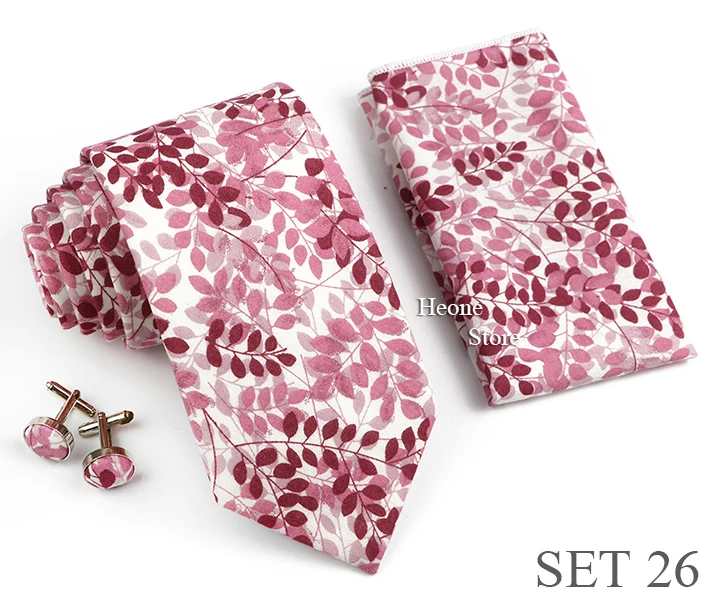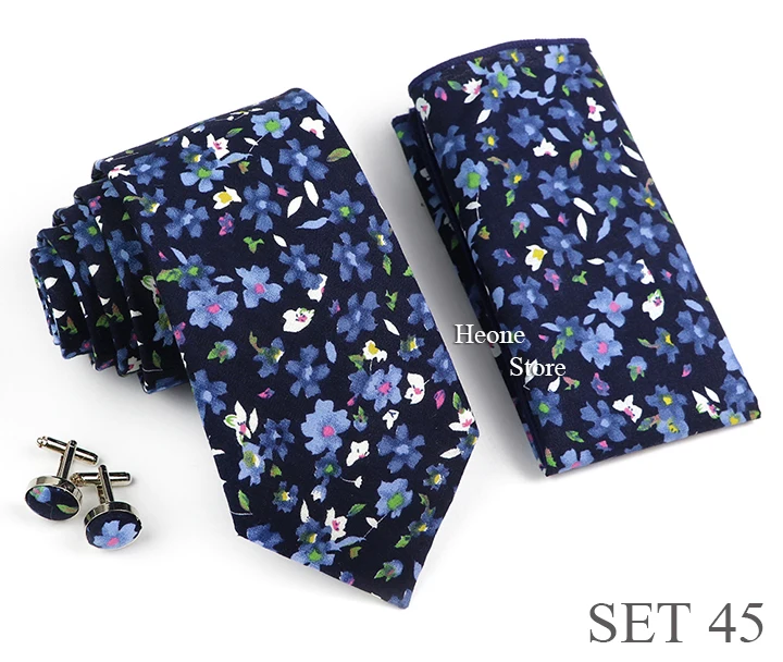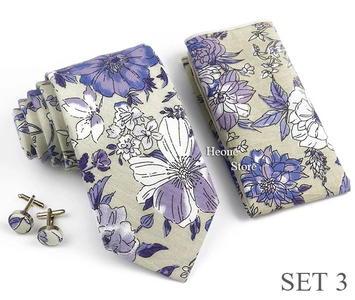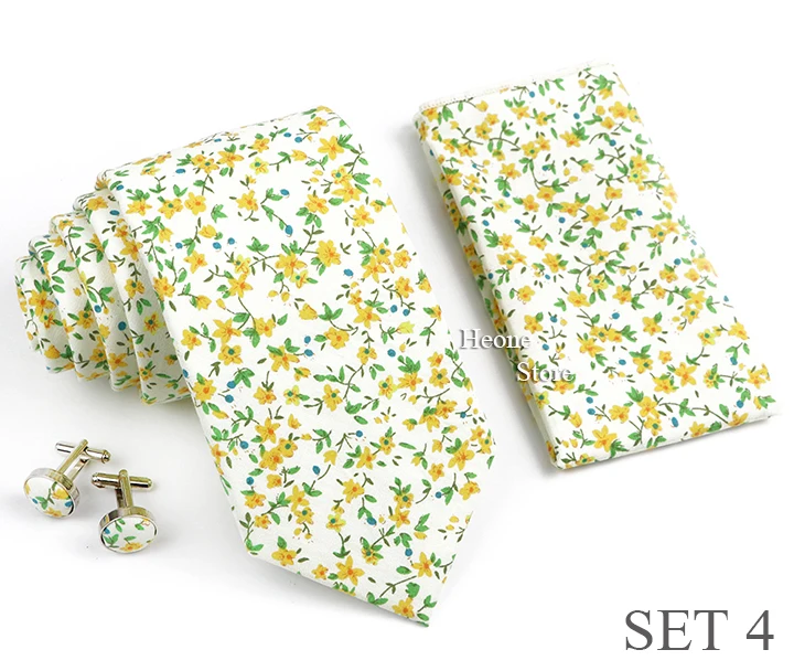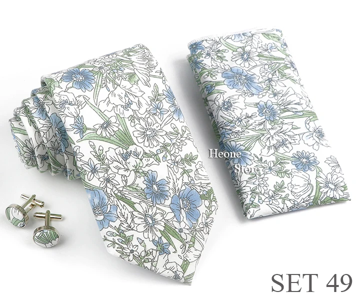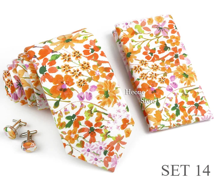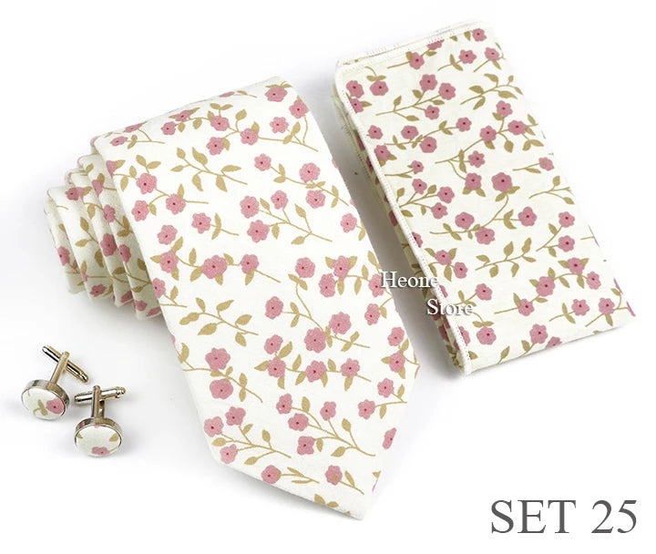 Hot Sell 3PC Chic Elegant Floral Tie Set Pocket Square Cufflinks For Men Women Wedding Party Dinner Suit Tuxedo Accessory Gift
