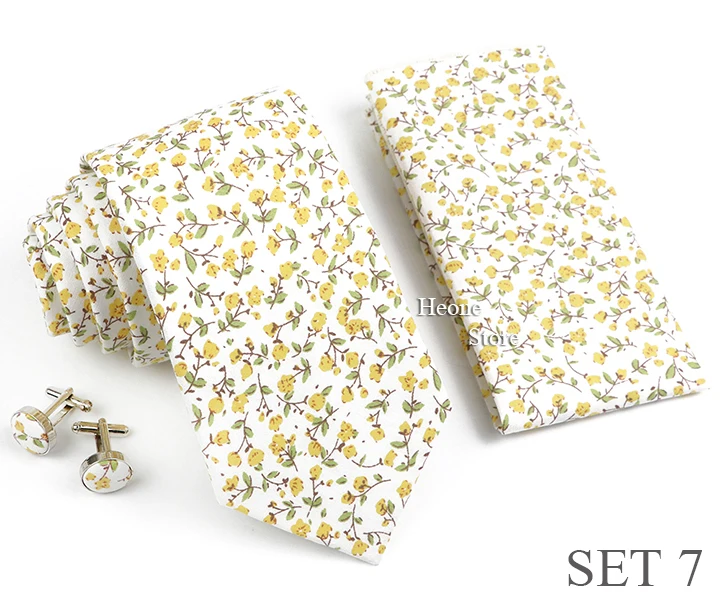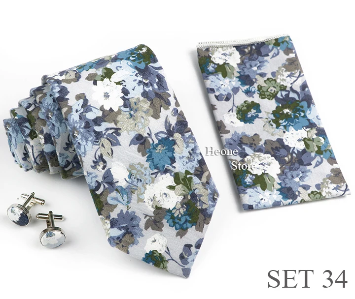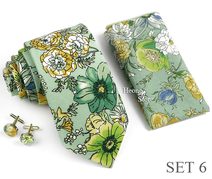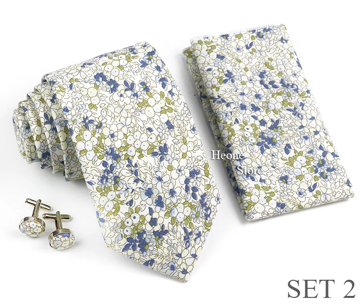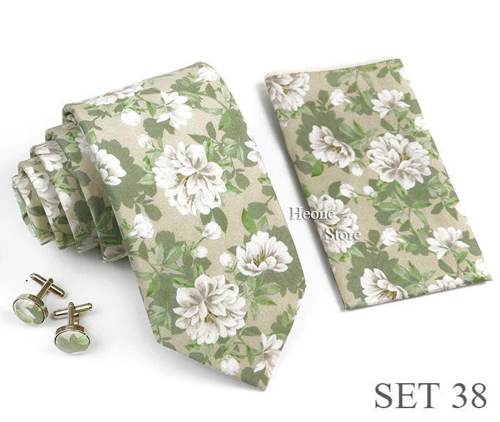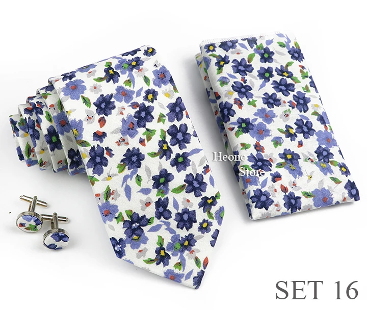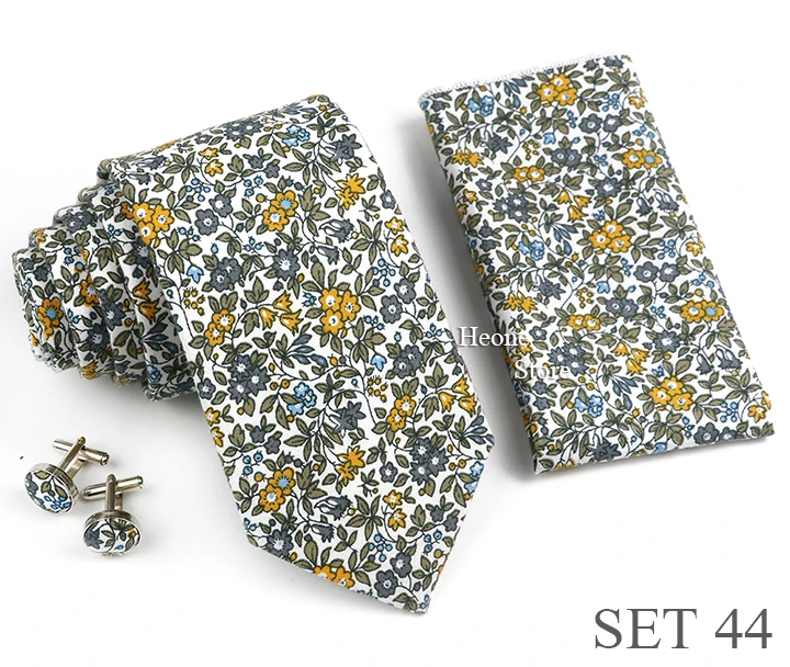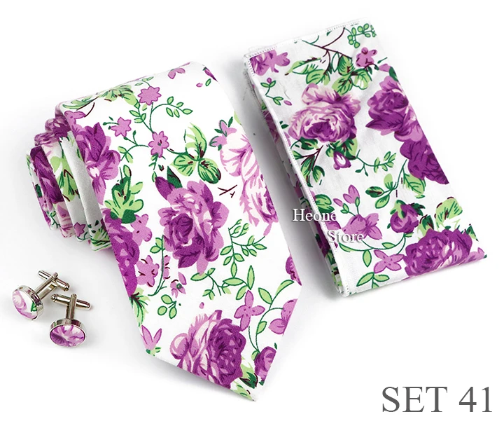 Hot Sell 3PC Chic Elegant Floral Tie Set Pocket Square Cufflinks For Men Women Wedding Party Dinner Suit Tuxedo Accessory Gift
