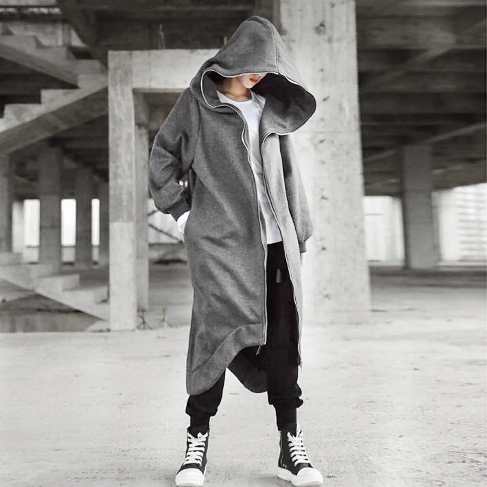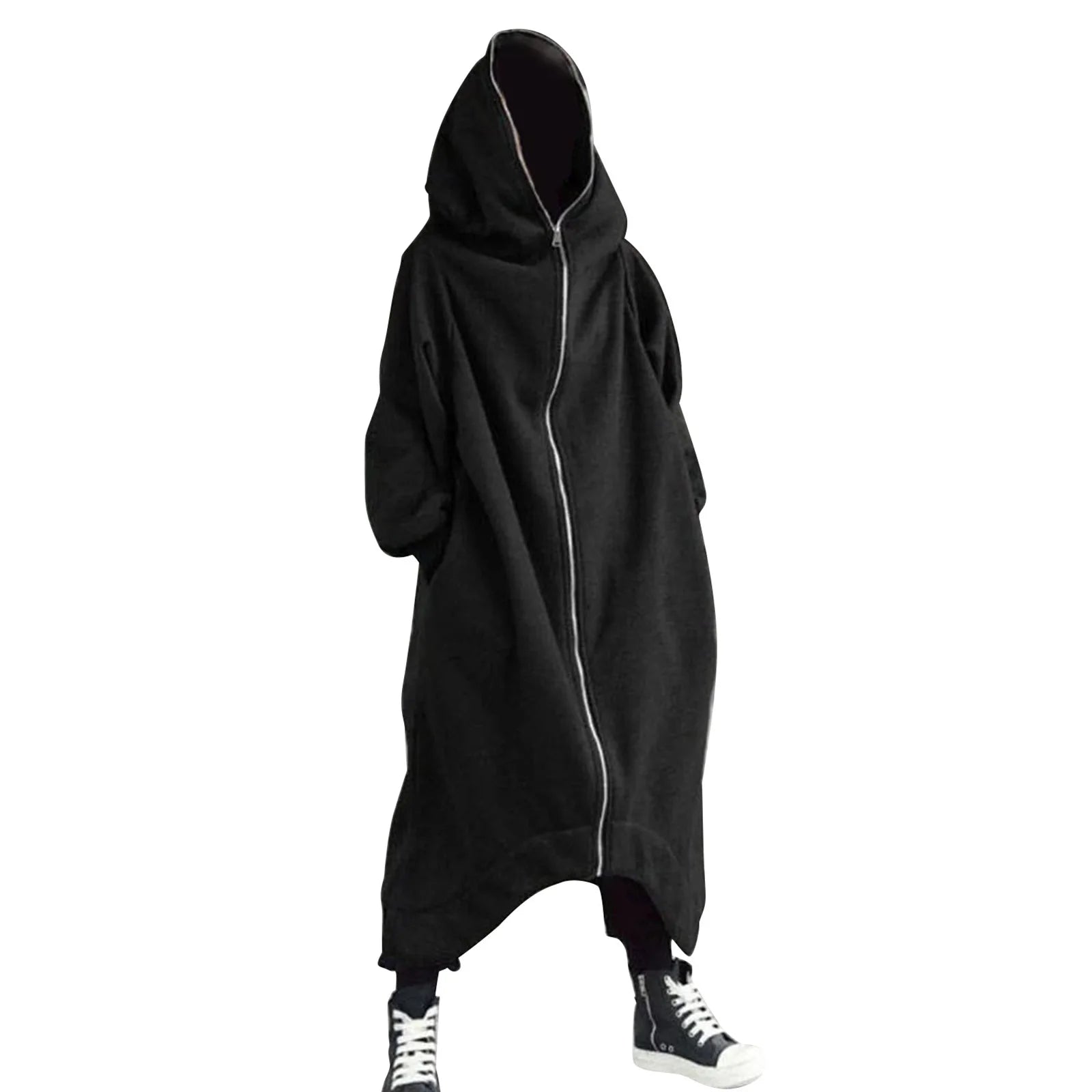 Hot Selling Unisex Long Sleeve Hooded Nazgul Long Coat Zipper Closure Fleece Lined Long Hoodie
