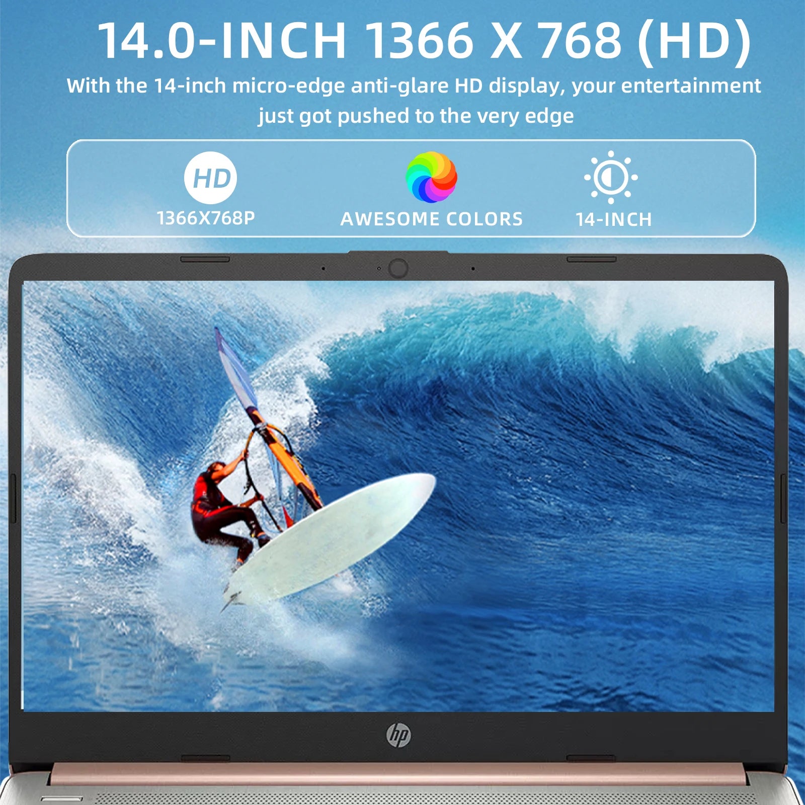 HP 14" Business Laptop,Intel Celeron N4120,16GB RAM,384GB Storage(128GB eMMC+256GB SD Card),1 Year Office 365