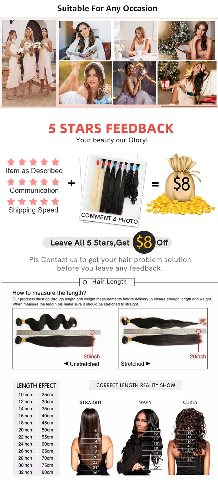 Size:45/55/65/75 cm(18/22/26/30 inches)