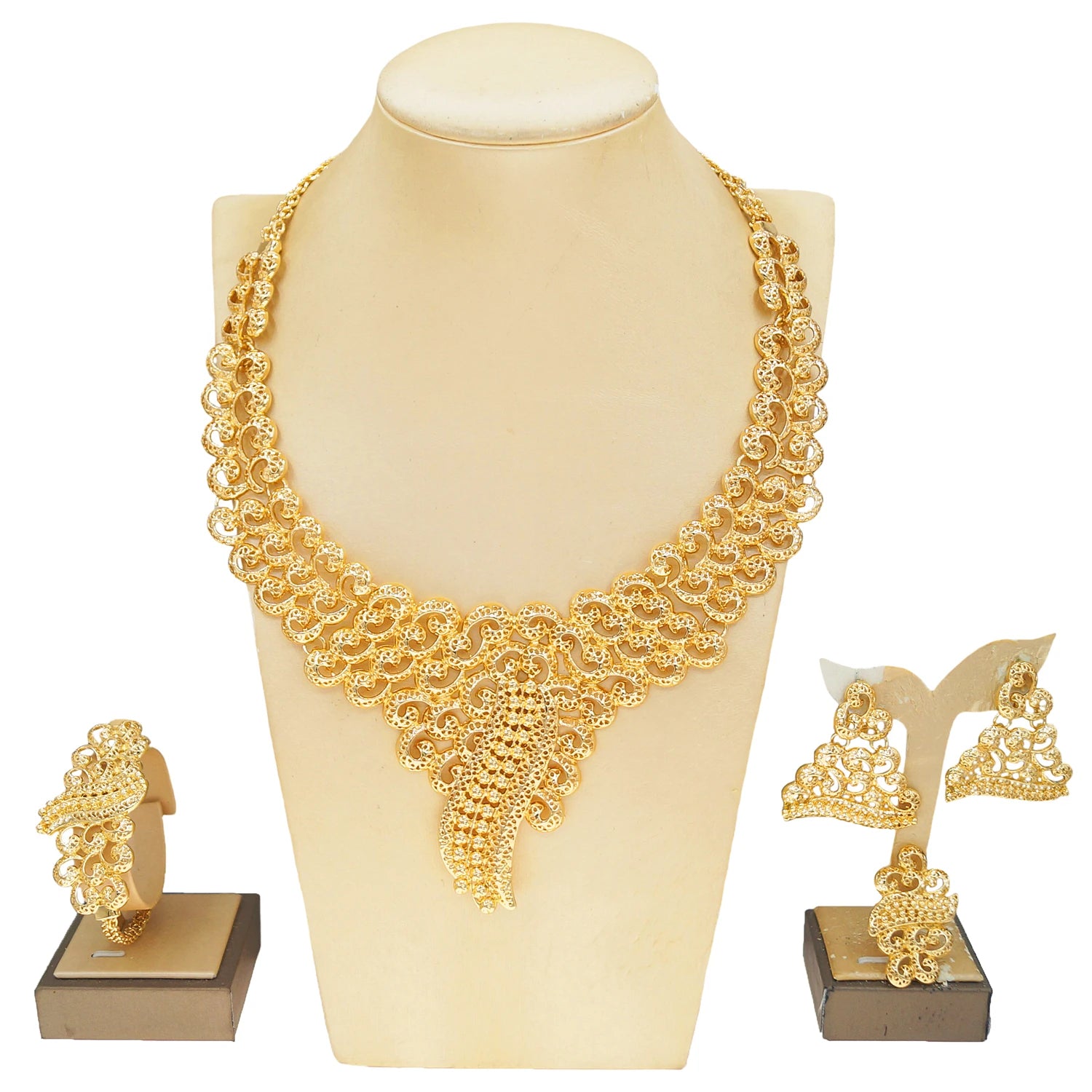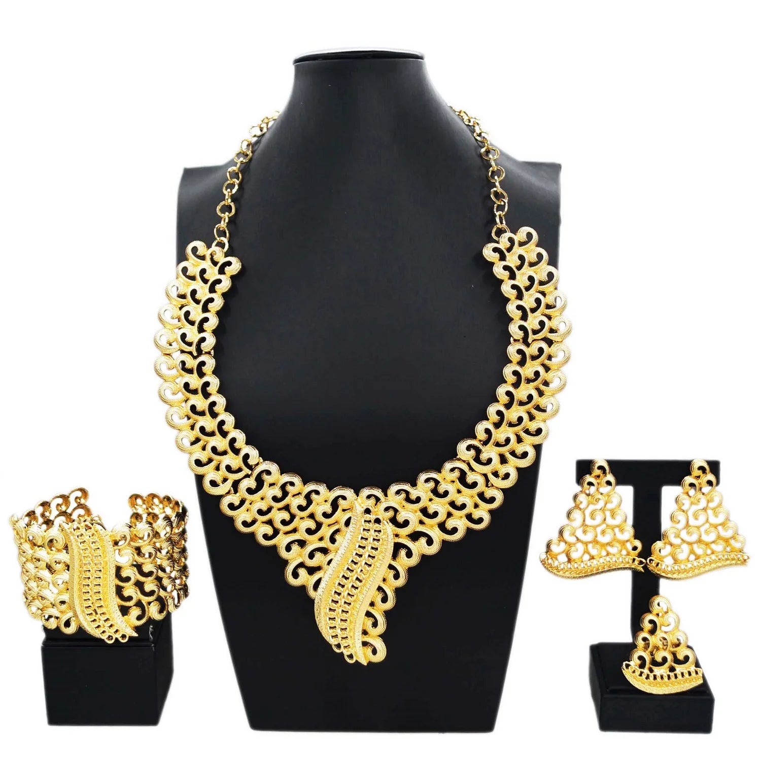 Jewelry Set Women Italian Brazilian Gold Plated Luxury Wedding Necklace Earrings Bracelet Set Gold Colors Party Jewelry