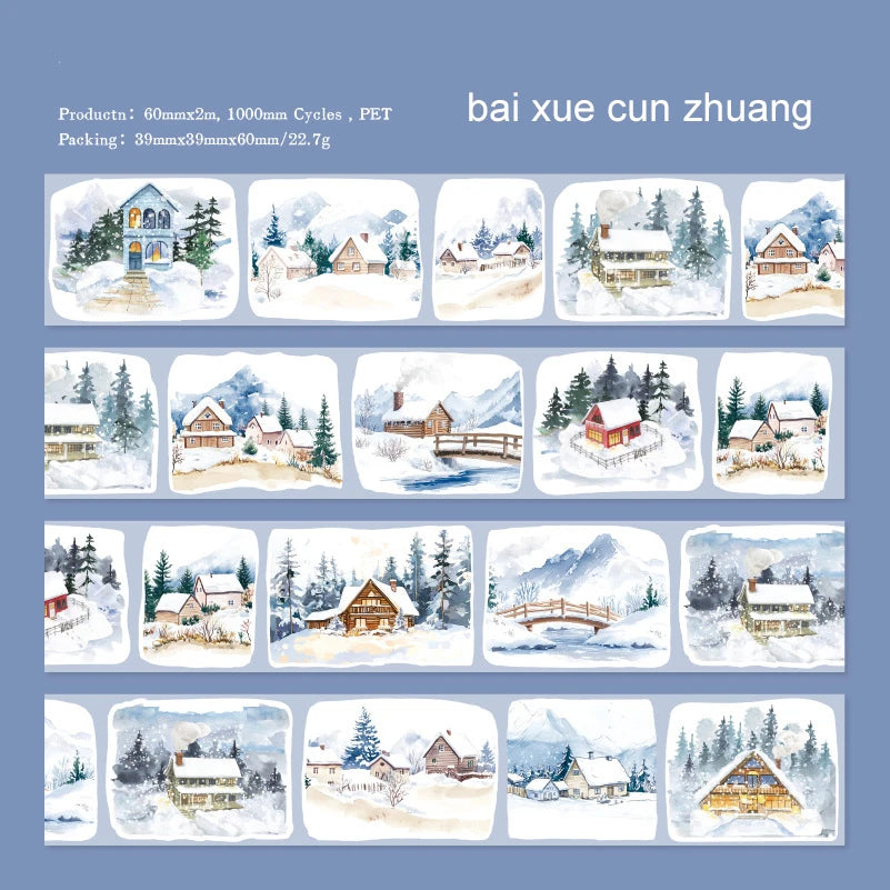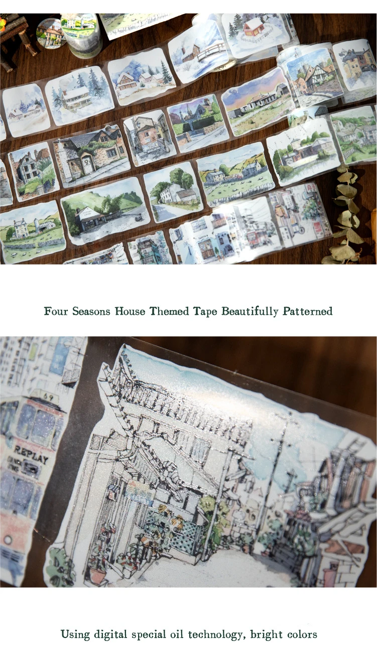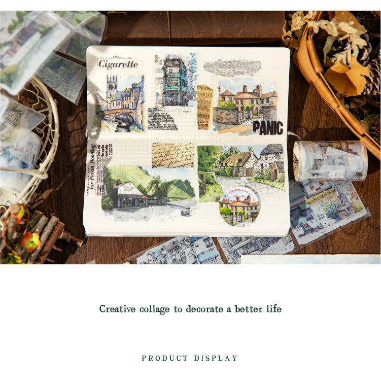 JIANWU 60mm*200cm Four Seasons with You Series Vintage Building Landscaping PET Tape Creative DIY Journal Collage Stationery