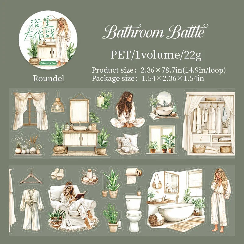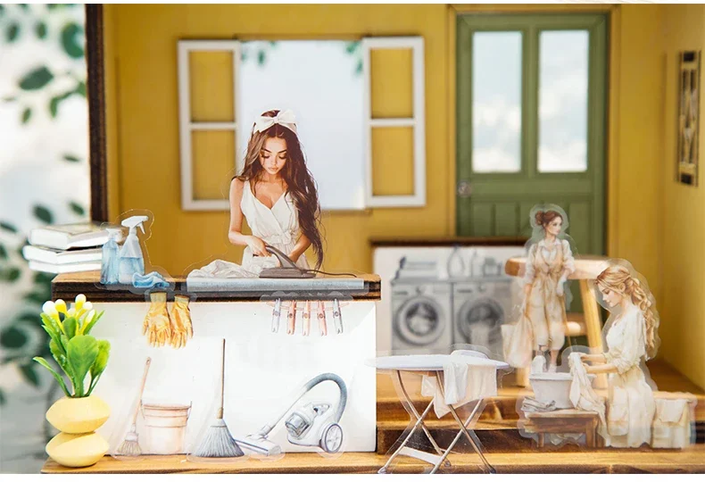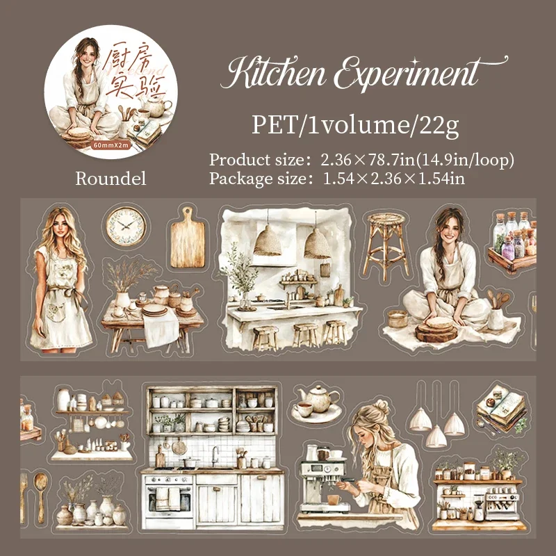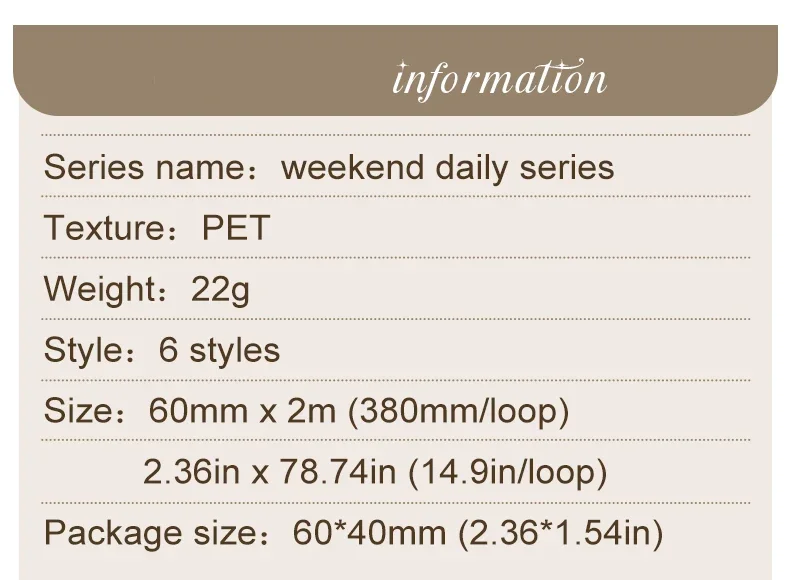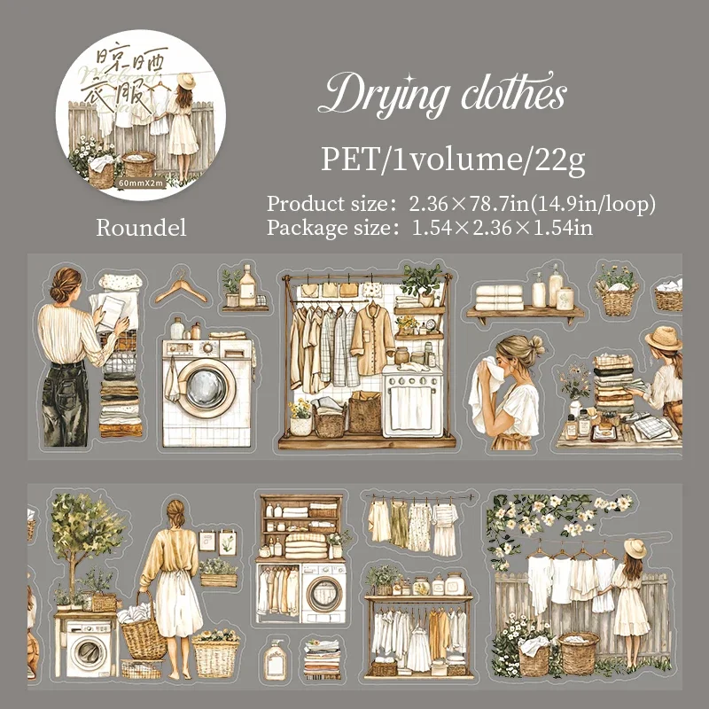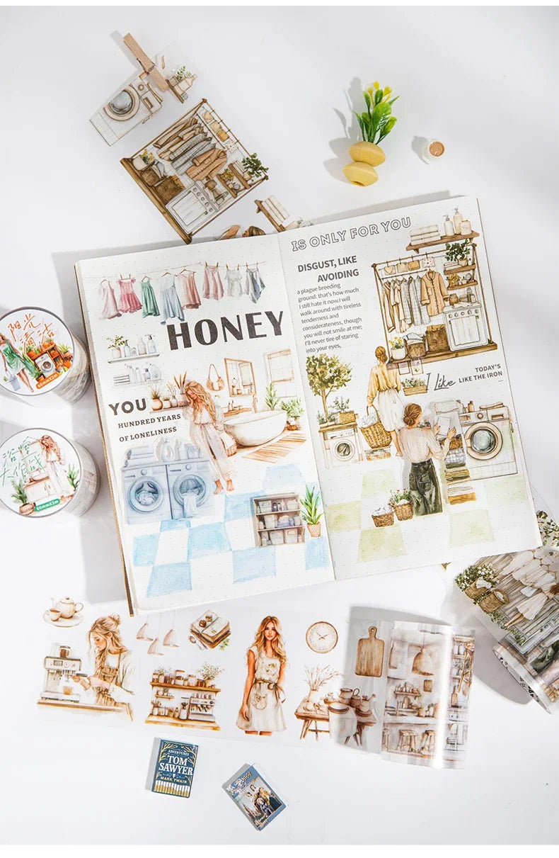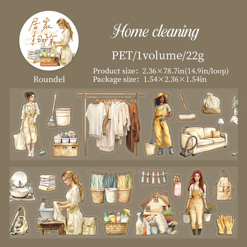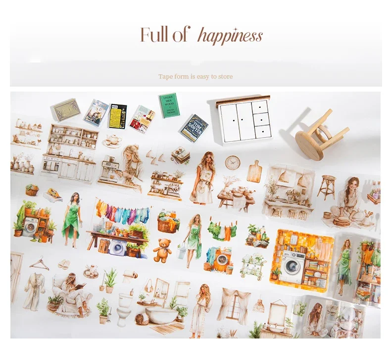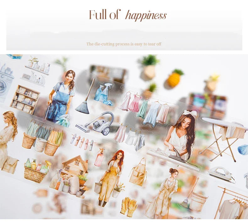 JIANWU 60mm*200cm Weekend Daily Series Vintage Character Life Landscaping Material Collage PET Tape Creative Journal Stationery