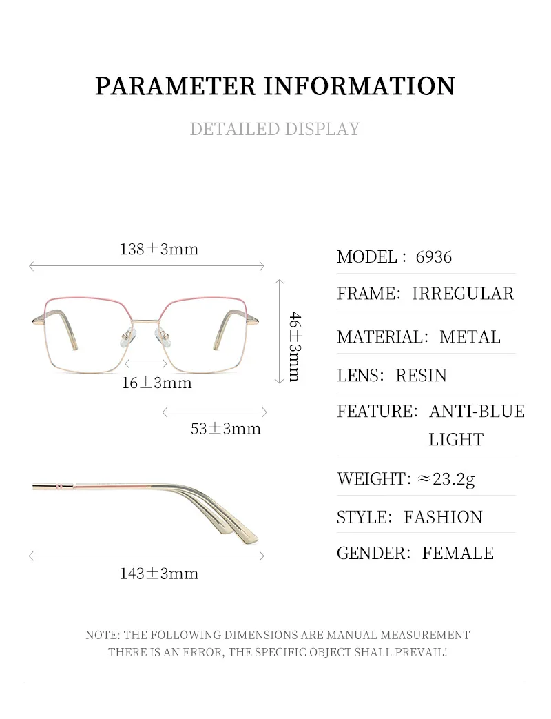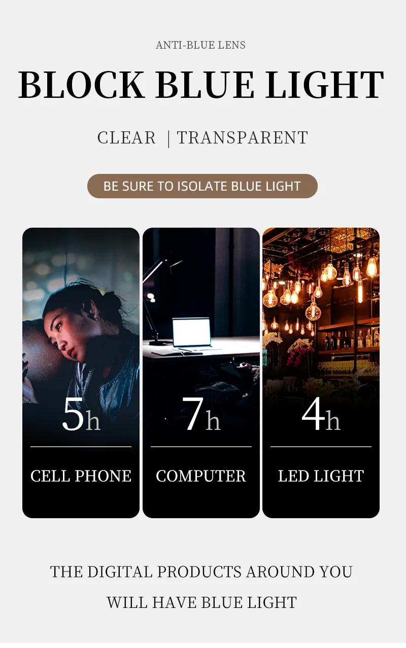 ⑤ Anti Blue Ray: The lenses have anti blue light and anti reflection functions, which are our most commonly used prescription glasses