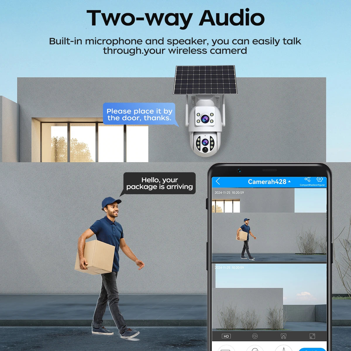 JOOAN 4K Solar Security Camera Wireless Outdoor Dual Lens Solar IP Camera PIR Color Night Vision Auto Tracking Battery CCTV Cam