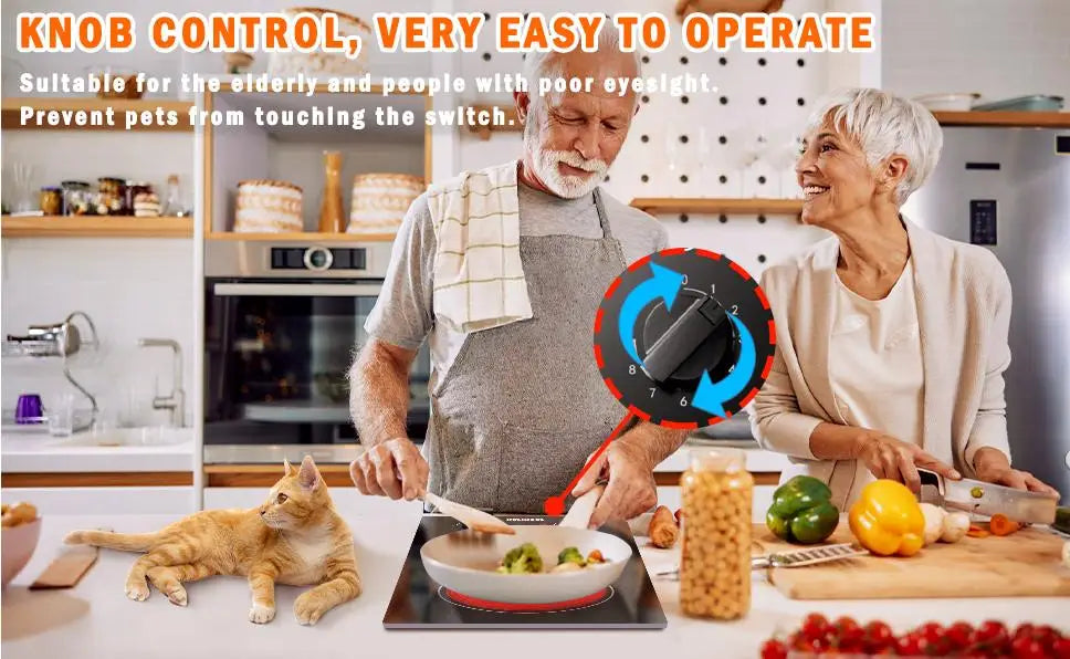 If there are elderly people in your family, if you don't like complicated sensor touch control electric cooktop, Karinear knob-control electric stovetop must be your best choice.