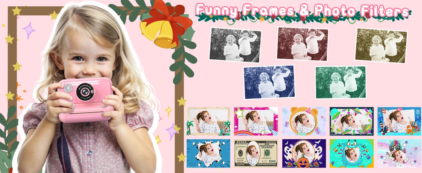 【Multifunctional Instant Camera for Kids】This kids camera features instant printing, 2.4-inch large screen, 1080P video, 10X digital zoom, fill light, time-lapse, burst recording, funny stickers, music player and more. It can meet children's different needs and cultivate their interest in exploring the world of photography, which is the best choice for children's gift.
