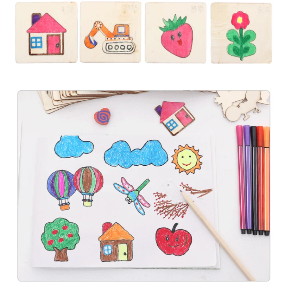 Kids Drawing Toys Montessori DIY Painting Stencils Template Wooden Craft Puzzle Educational Toys for Boys Girls Birthday Gift