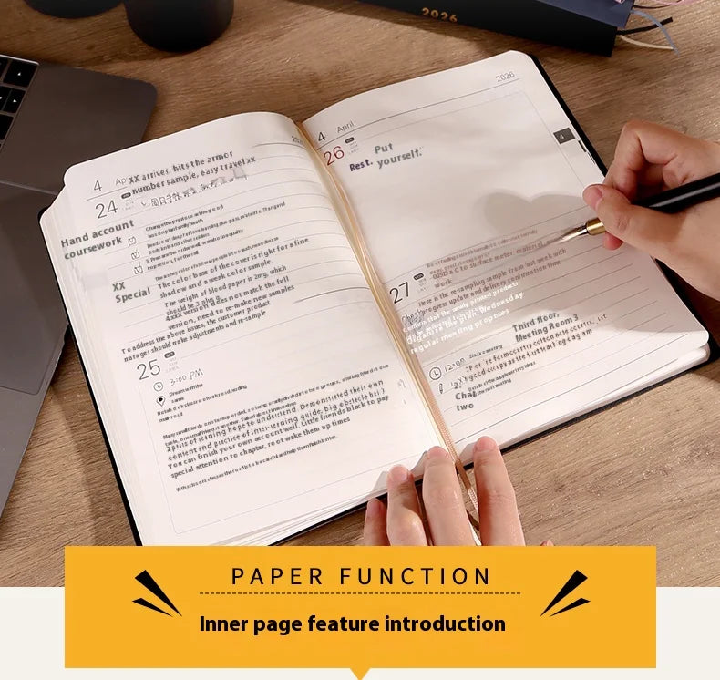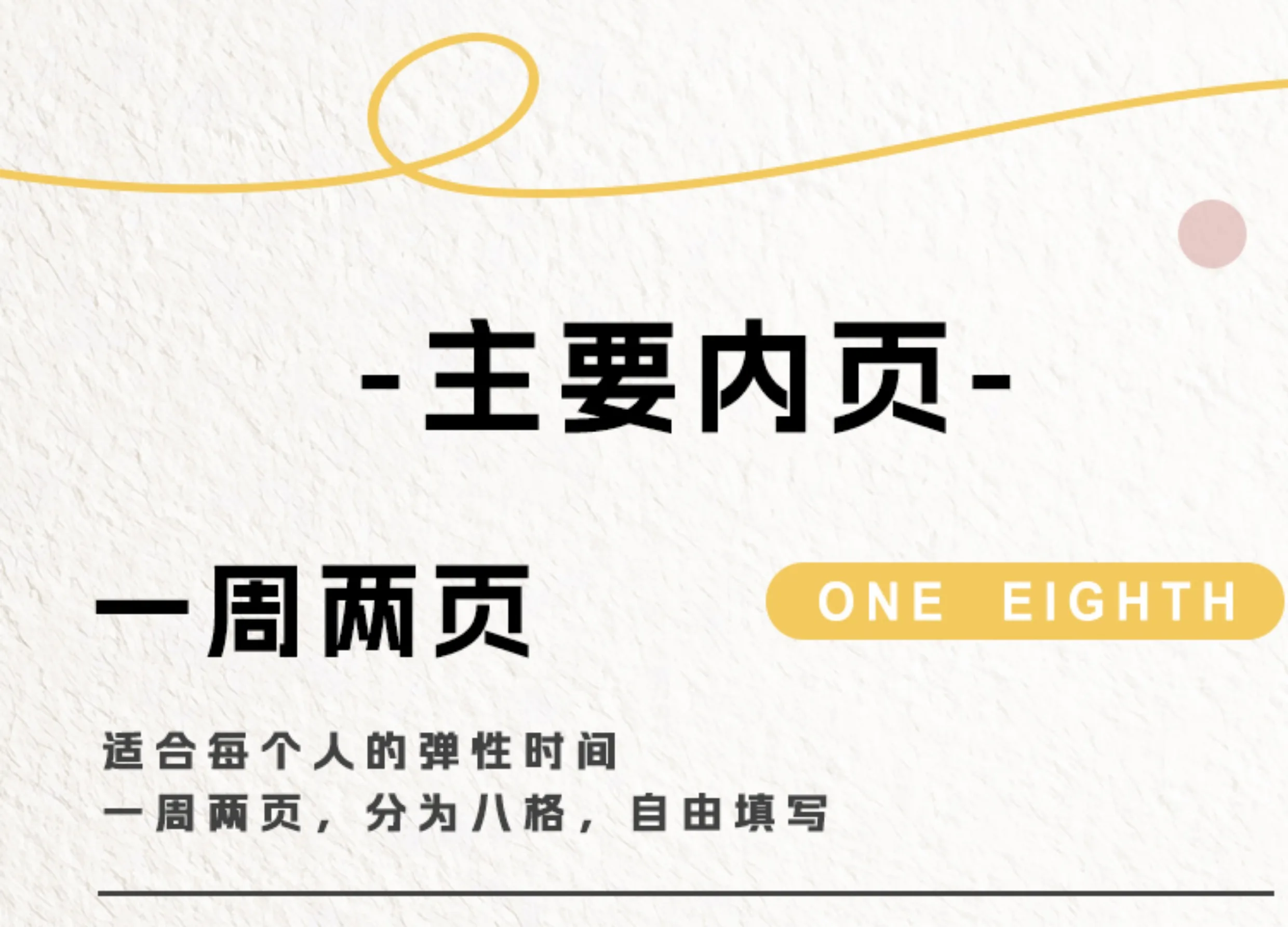 1. Efficiency planner, two days per page, Monday to in horizontal format, weekends in blank format, plan seriously according to your set goals and record one by one