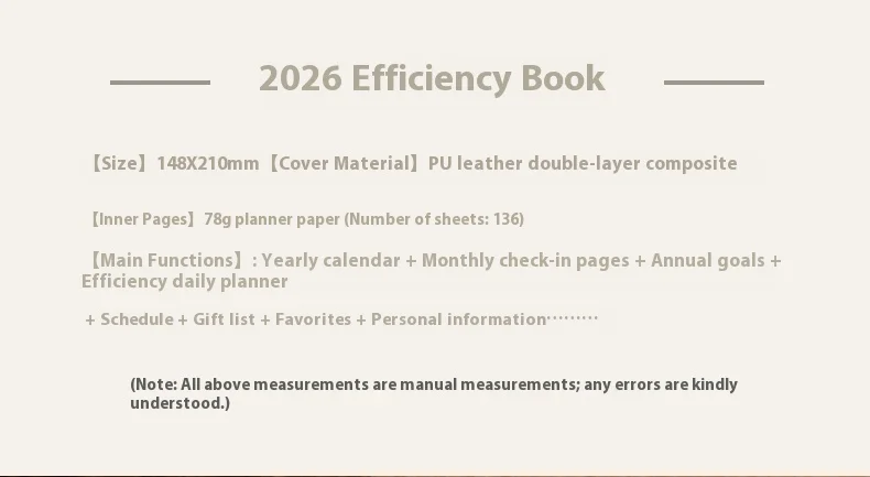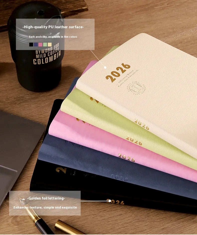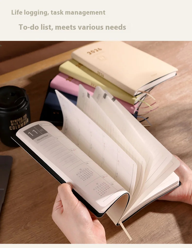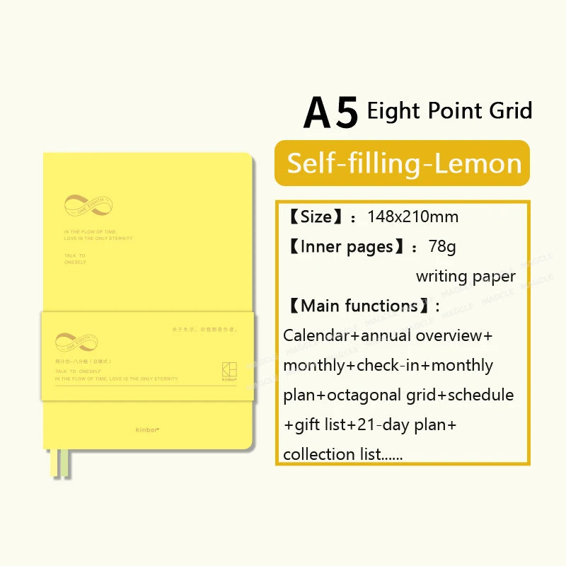 About The Notebook: Kinbor Eight-Grid 78g Writing Paper A5 Calendar Notebook Daily Planner Self-Discipline Check-in Book Efficiency Handbook Hand Journal Time Management PU Notebook To Do List Stationery 2025