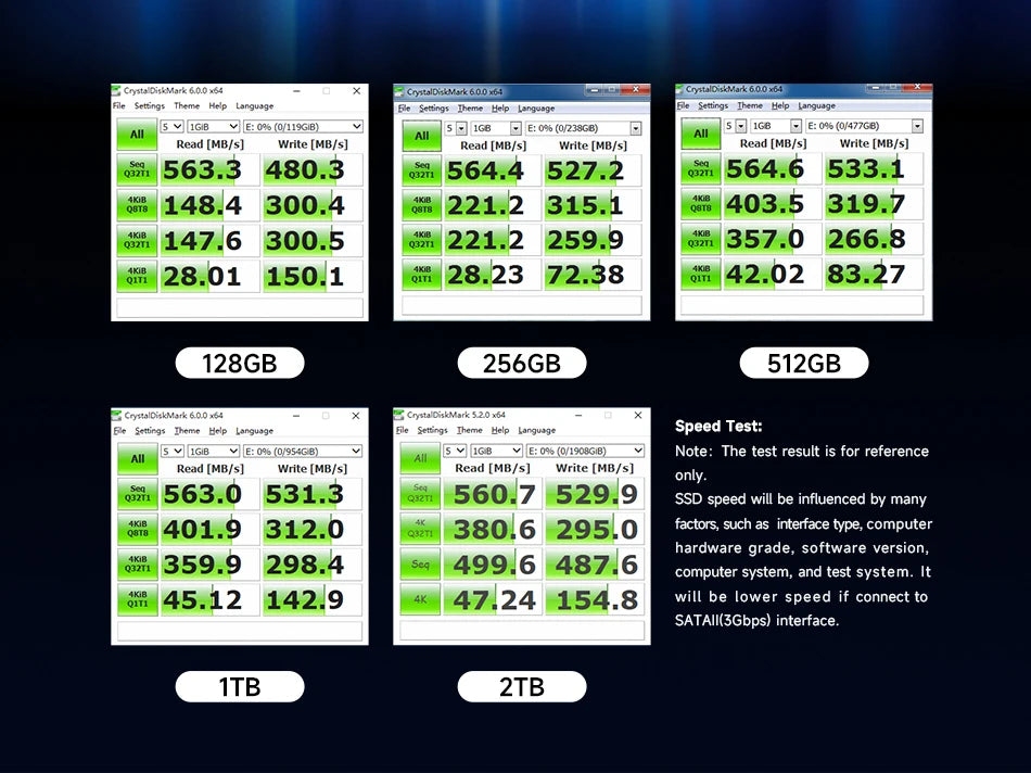 Note: the speed is just for your reference only as SSD speed will be influenced by many factors