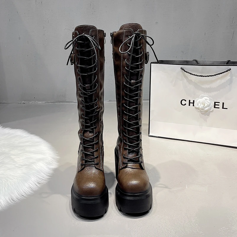 Knee High Women's Boots Lace Up High Heels Shoes Platform Chelsea Boots Winter 2025 Sexy Snow Long Boots Zip Pumps Mujer Botas