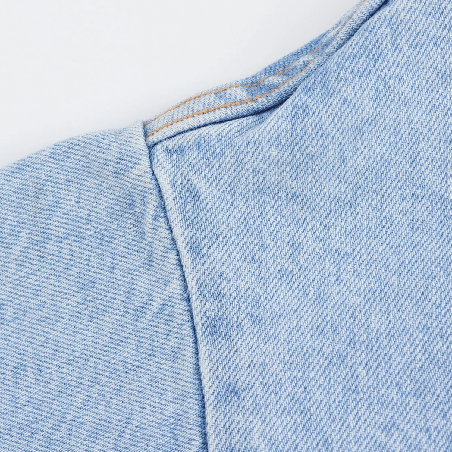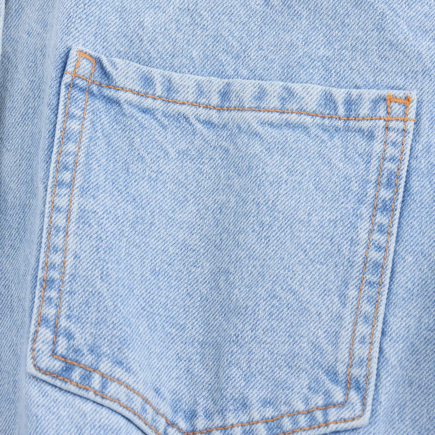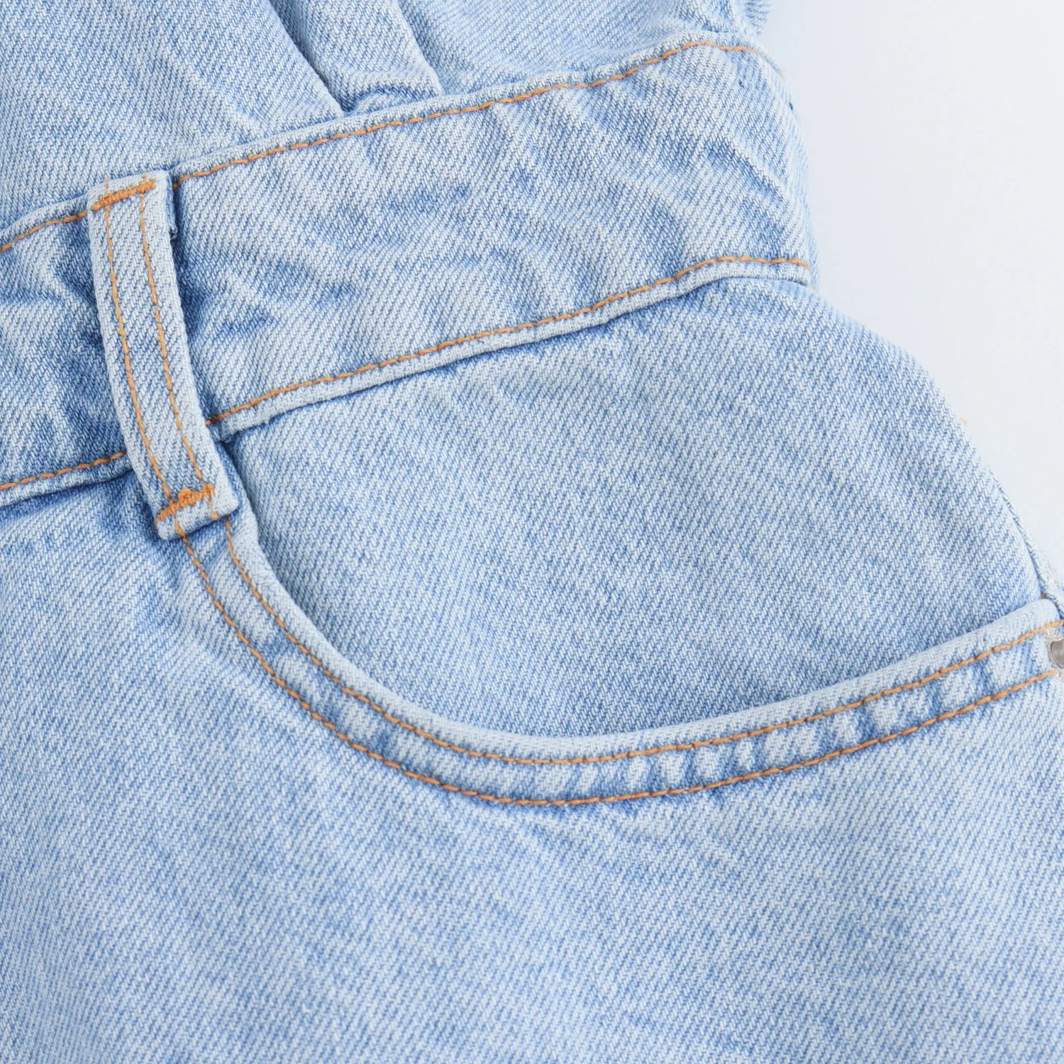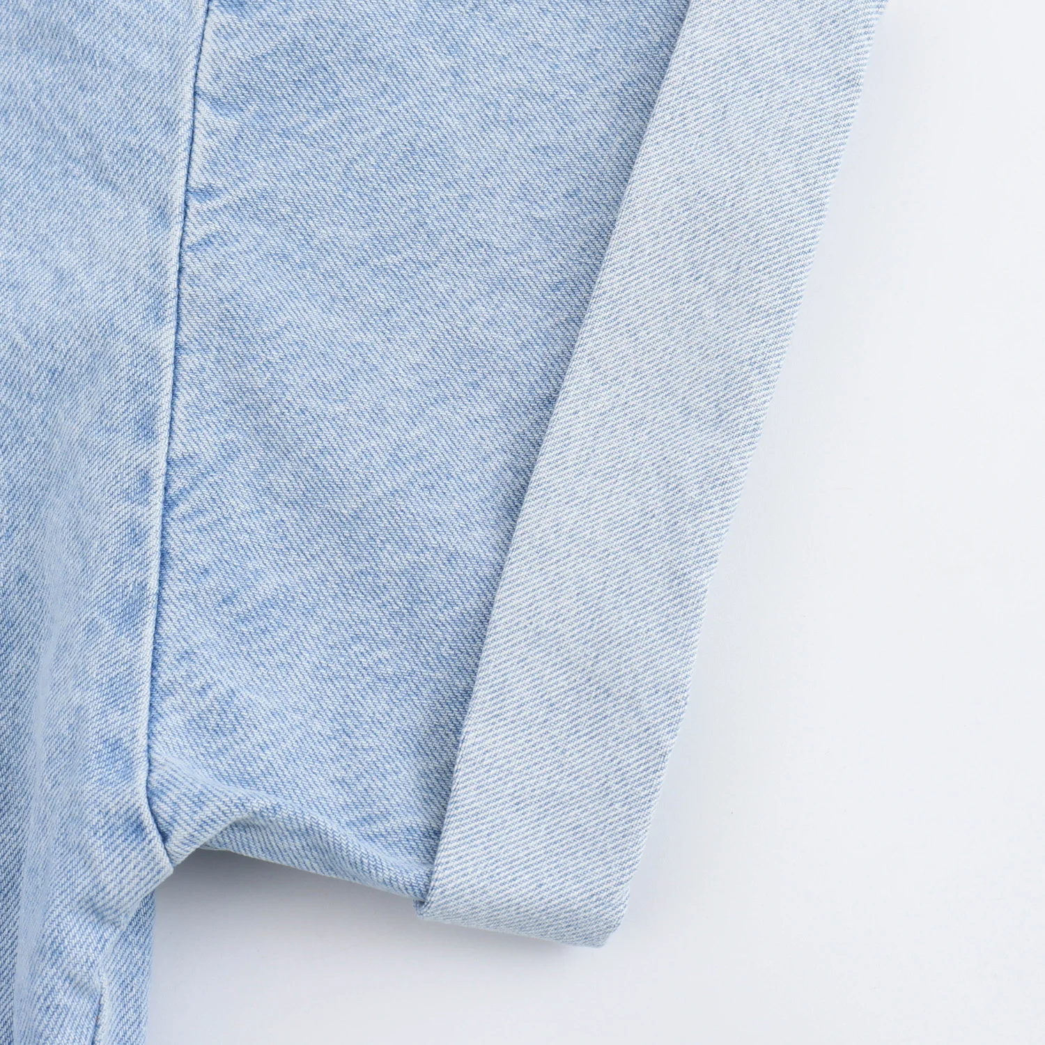 KP&ZA Vintage Summer Women's Casual Slim Denim Overalls Washed Technique Waist Solid 1879039 Rolled Sleeve Lapel Button