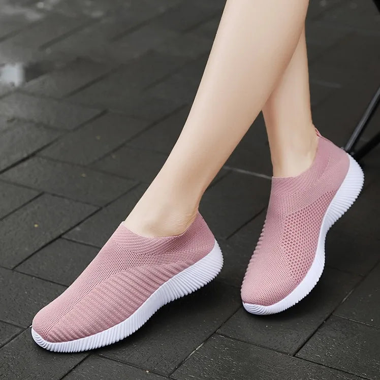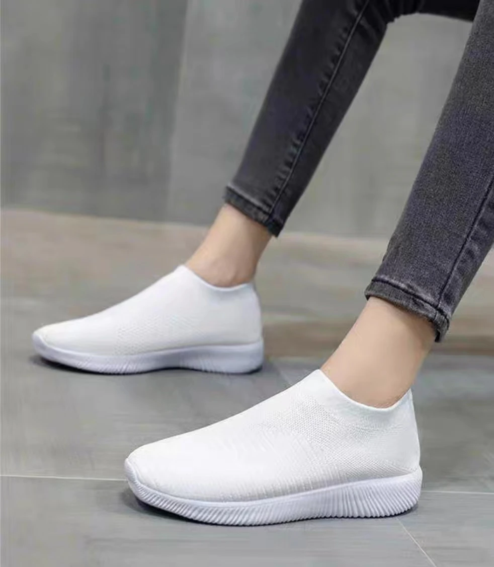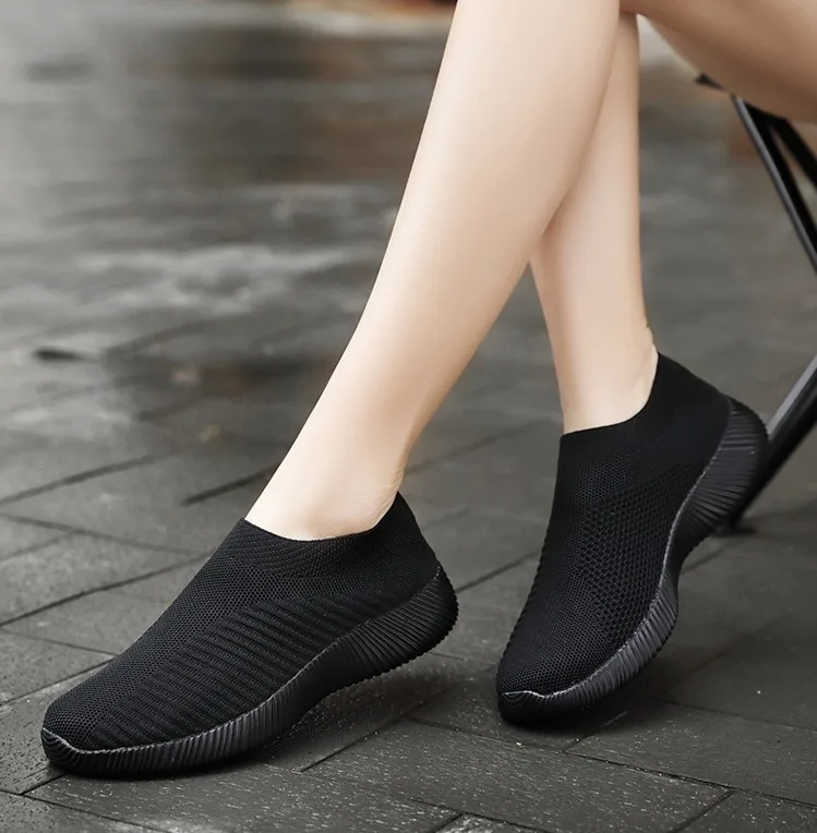 Ladies Casual Shoes Lightweight Comfortable Outdoor Walking Shoes Solid Color Soft Sole Slip-On Flats Sneaker Shoes For Women