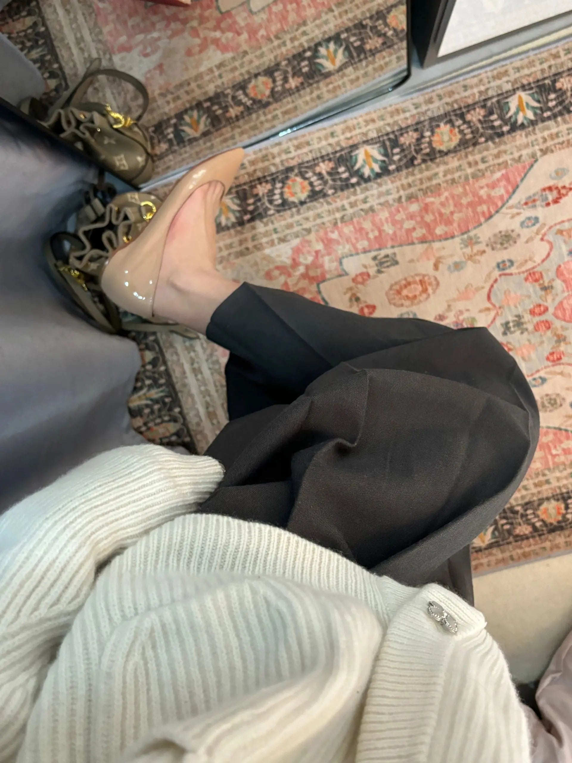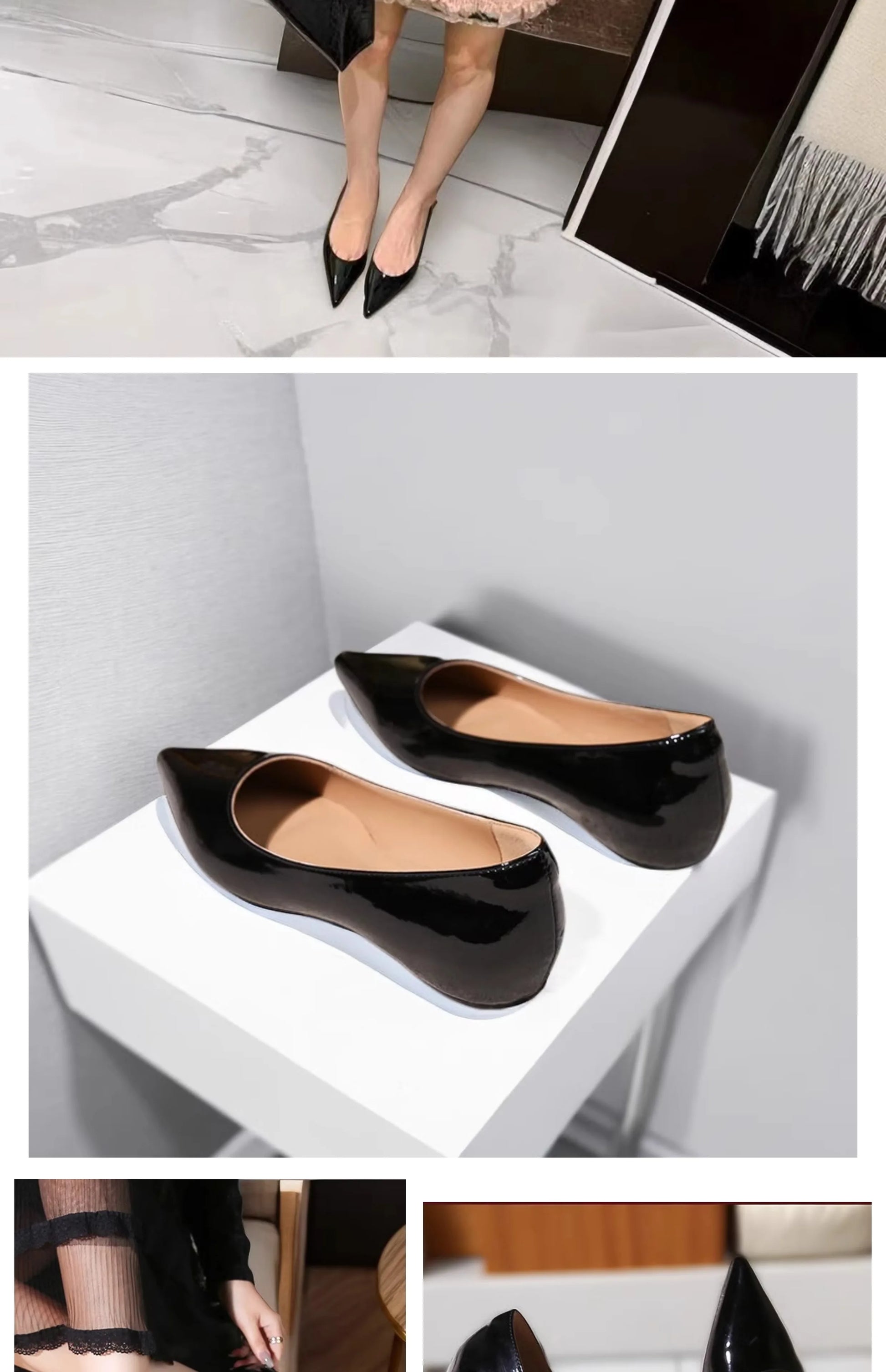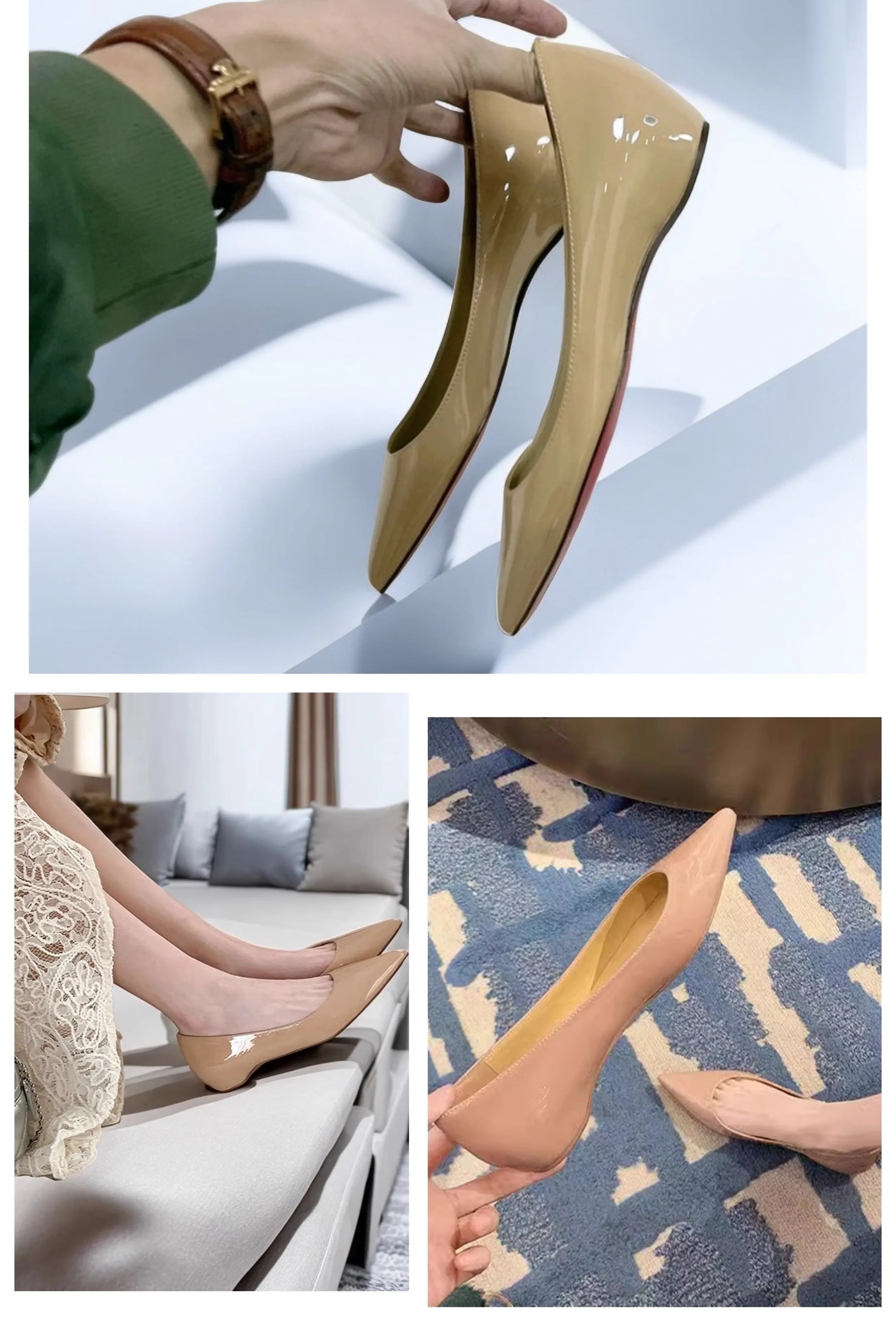 Ladies' pointed, internally raised flat sole single shoe, patent leather solid color versatile casual shallow mouth single shoe