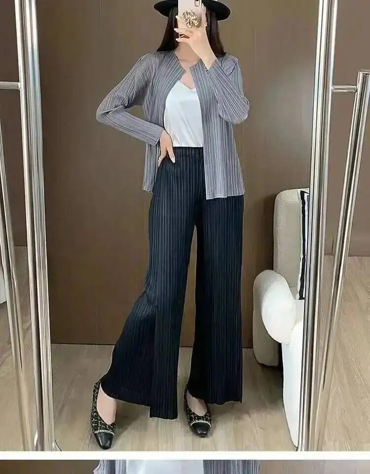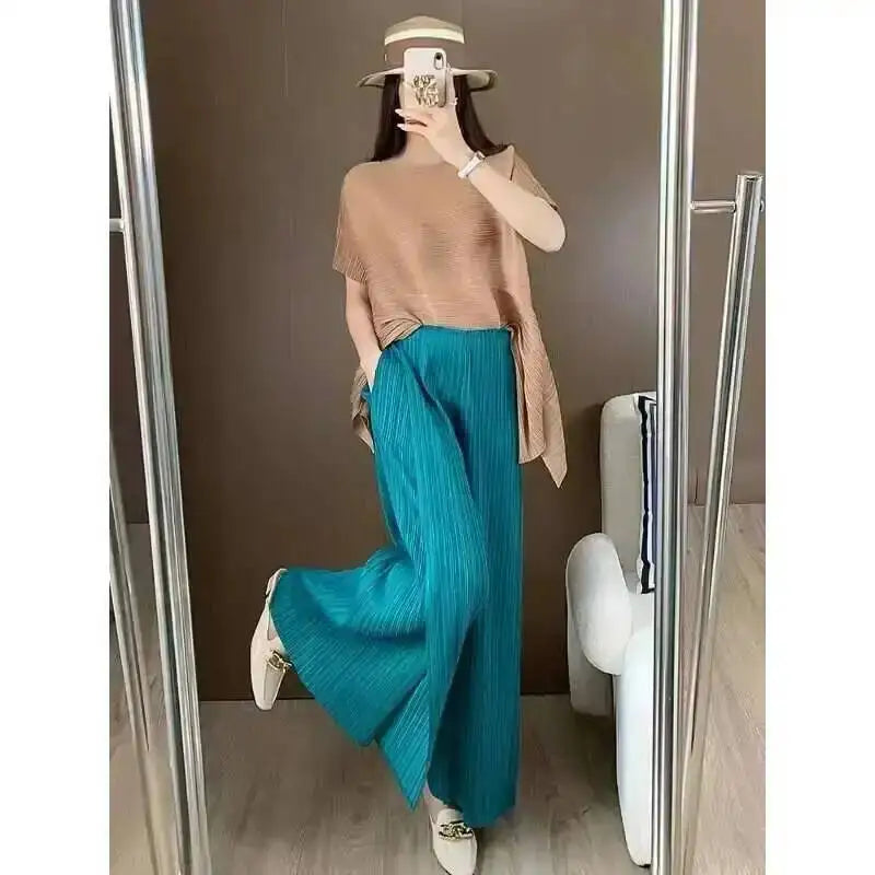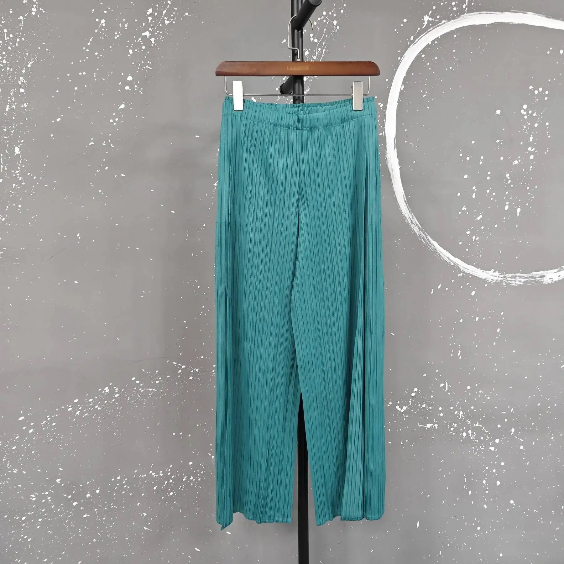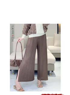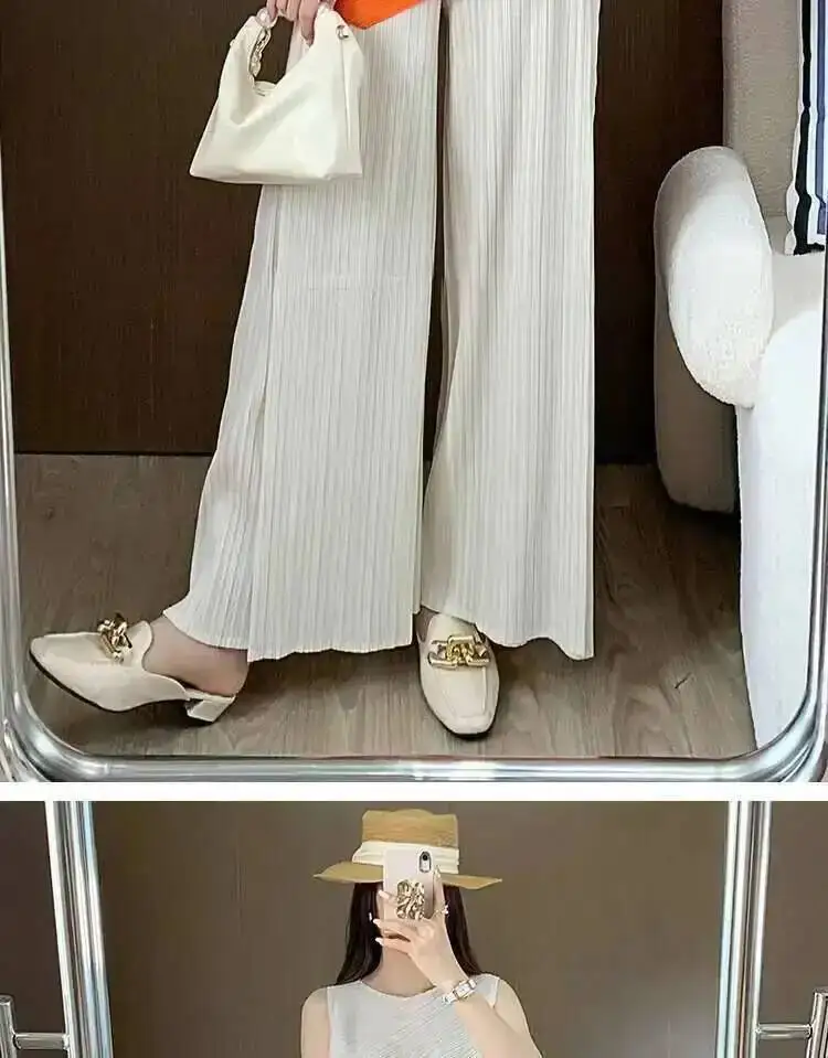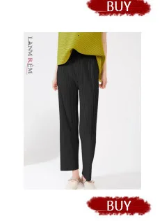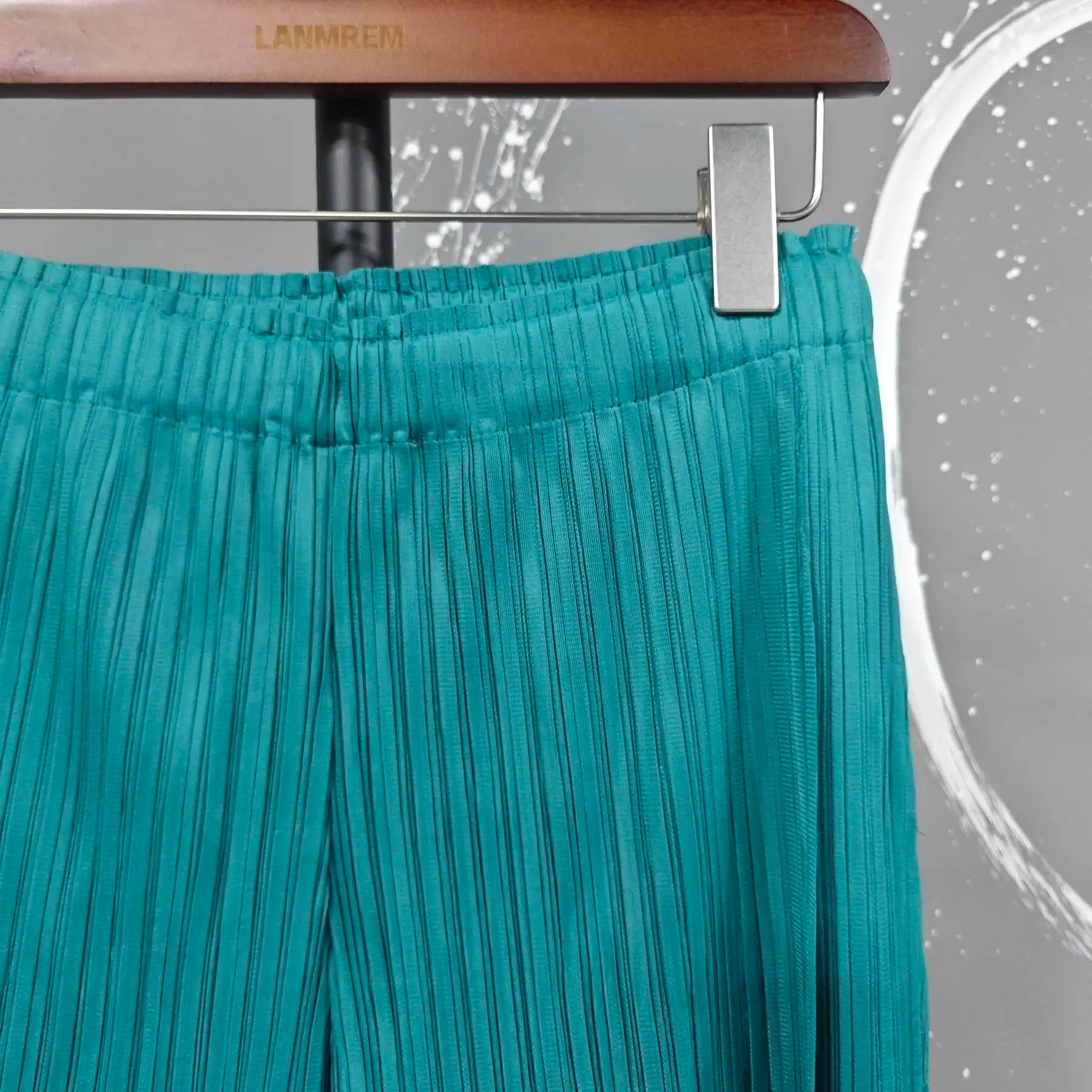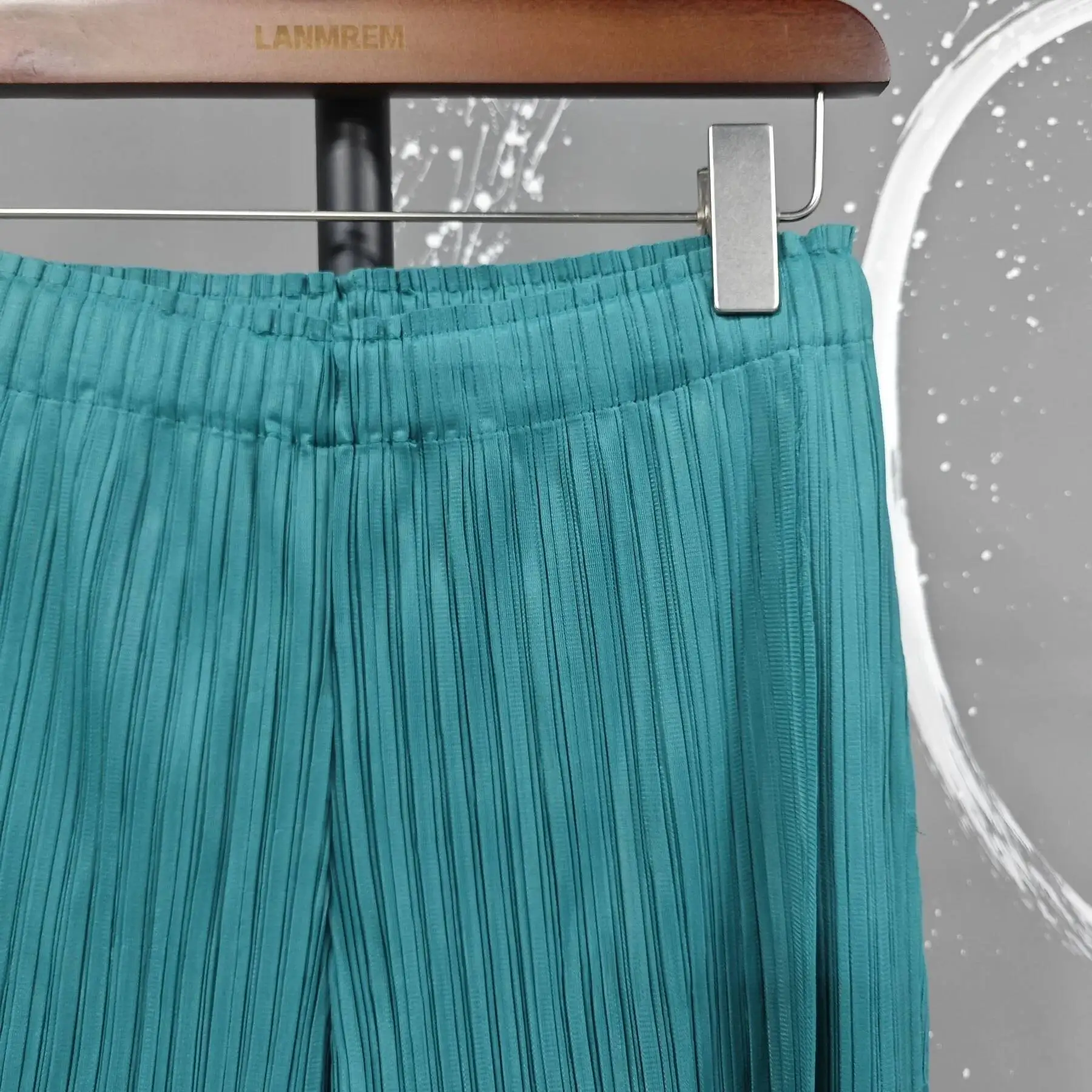 LANMREM patchwork design women's Pleated trousers elastic High Waisted Draped Straight Wide Leg Pants 2025 chic new 2DB3871