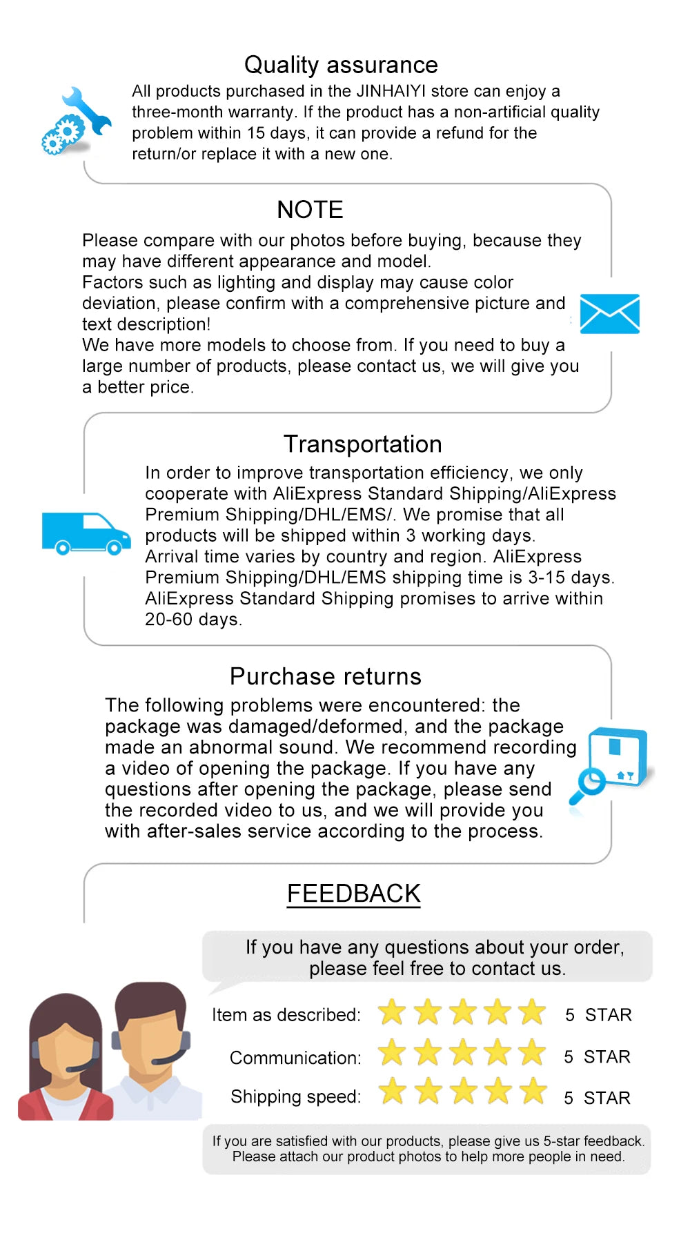 1 .Please compare with our photos before buying, because they may have different appearance and model.