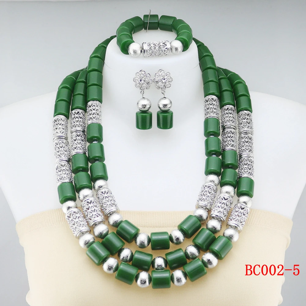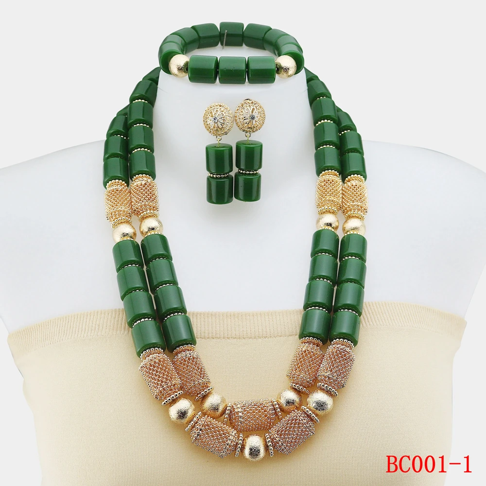 Latest Design Resin Beads Indian Wedding African Bridal Jewelry Set Women Green Coral Beads Necklace Set