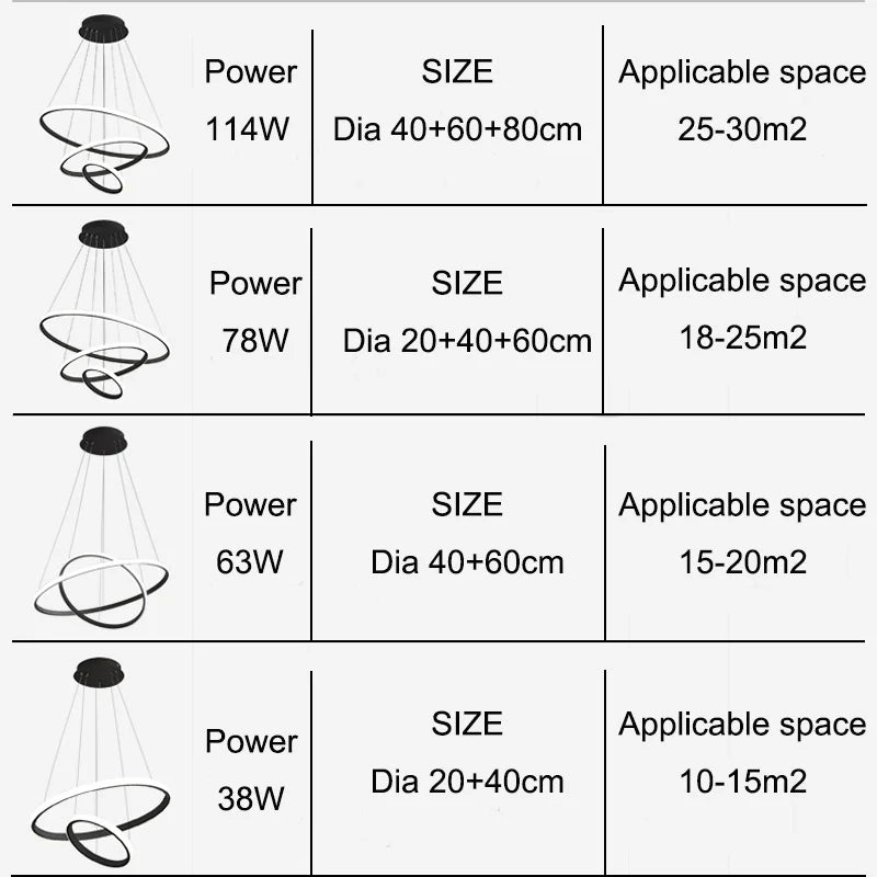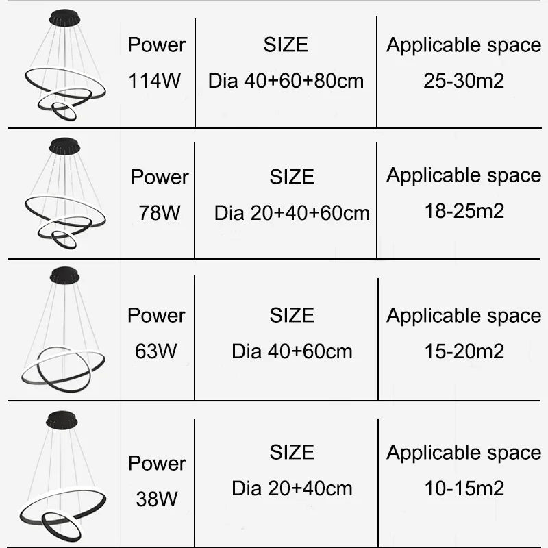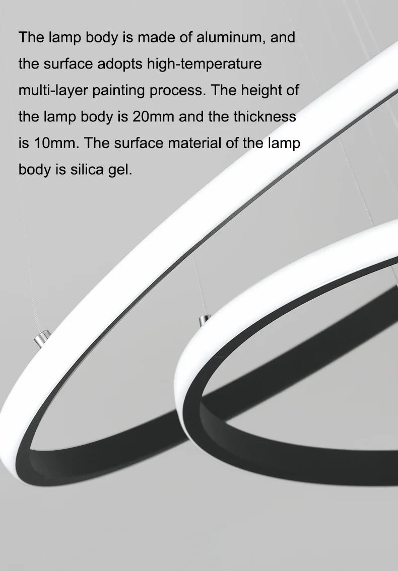 Led Circle Ceiling Hanging Chandelier Rings Black Loft Living Dining Room Modern Pendant Lamp Kitchen Indoor Lighting Fixture