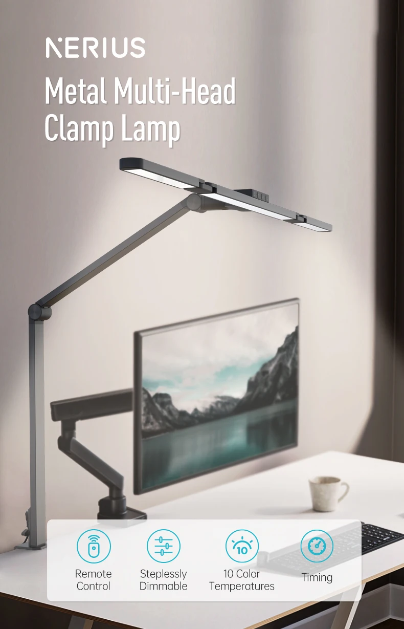 LED Desk Lamp with Clamp Remote Dimming 24W Ultra Bright Desk Lamp for Home and Office Architects Paired with Ambient Lighting