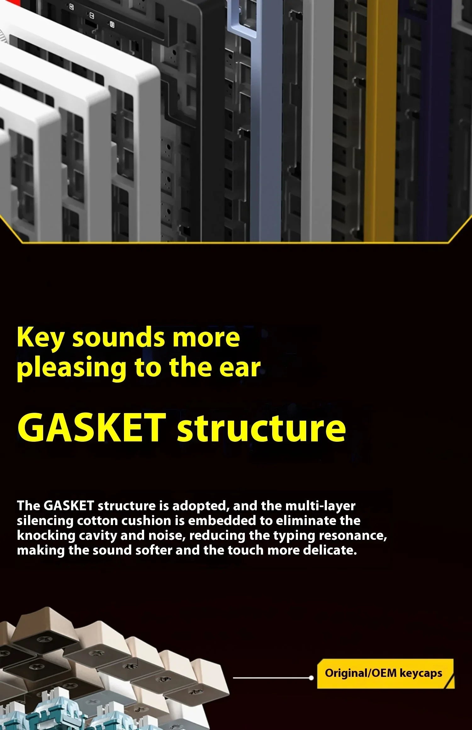Internal filling: PO cotton + IXPE axis pad + PET gasket + single key slotted PCB + PO cotton + PET bottom pad