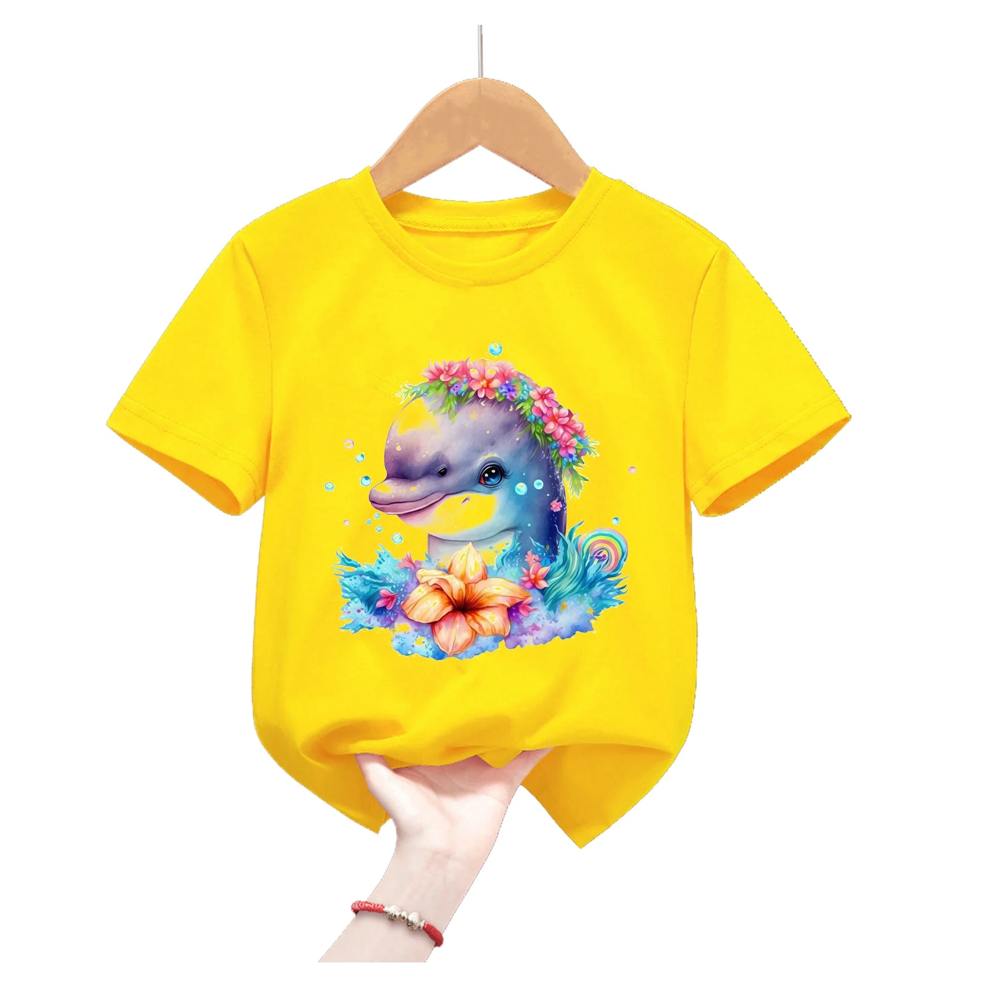 Lion King Animal Print Yellow T Shirt For Girls/Boys Summer Short Sleeve Tshirt Koala/Duck/Bee/Bunny/Dolphin Kids Clothes