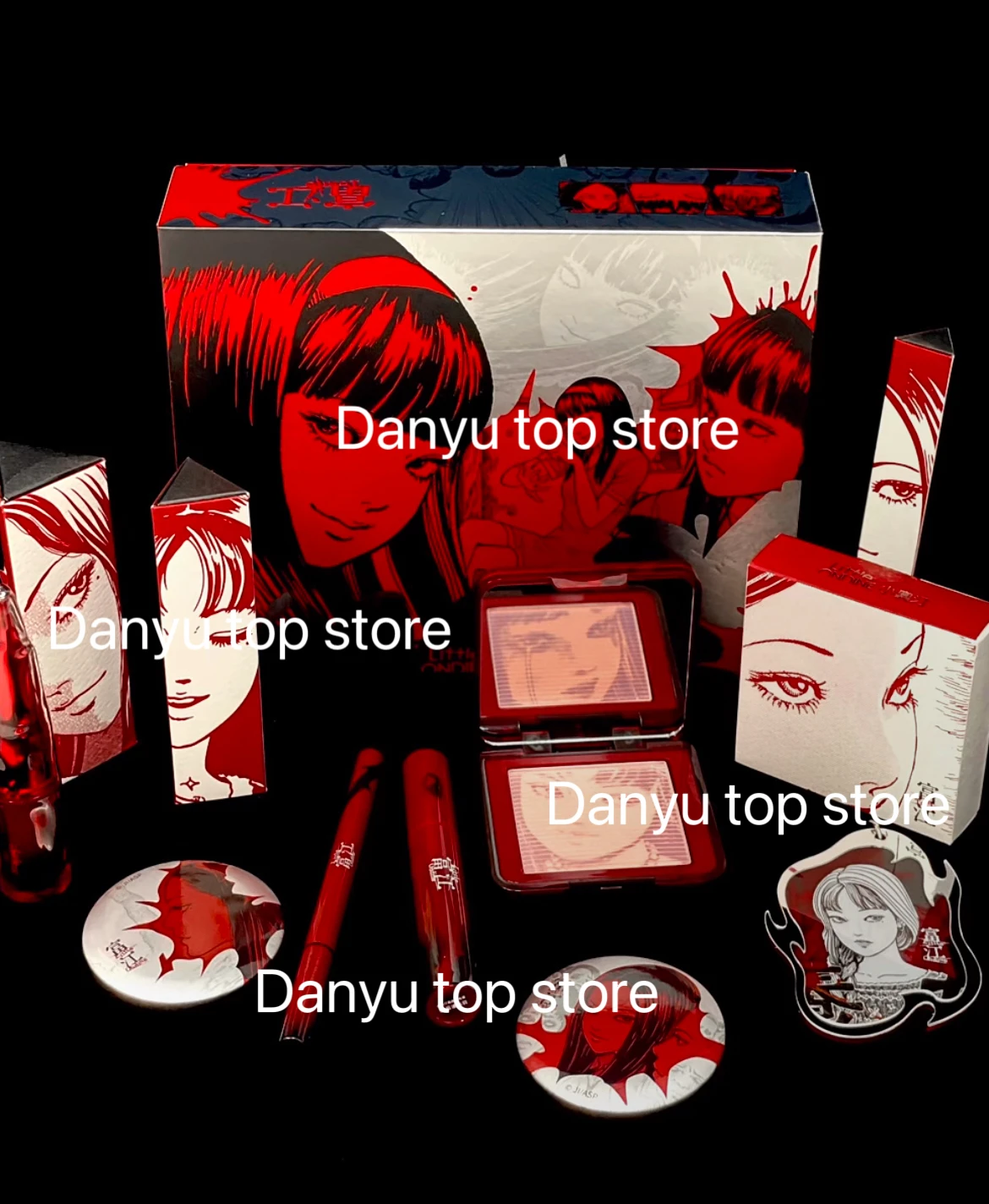 C: Eyeliner 01*1pcs+ lip gloss 01*1pcs+ Blush 01*1pcs+badge*1pcs+pendant*1pcs