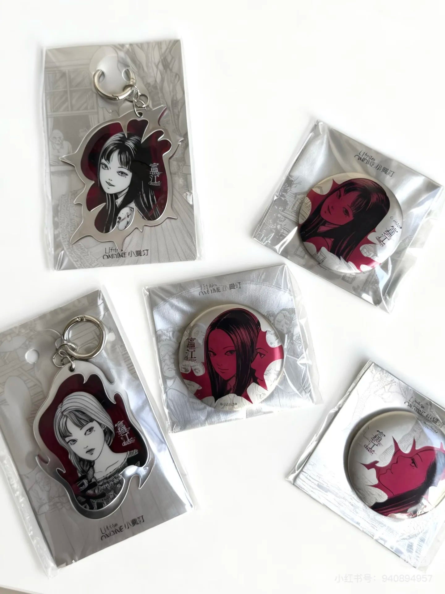 E: Eyeliner liquid 01*1pcs+ lip gloss 01*1pcs+ Lip gloss 06*1pcs+ Blush 01*1pcs+badge*1pcs+pendant*1pcs