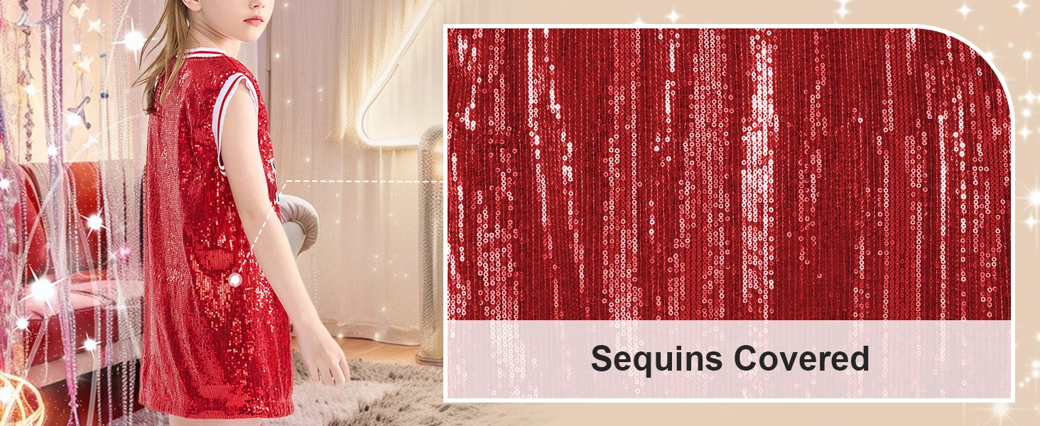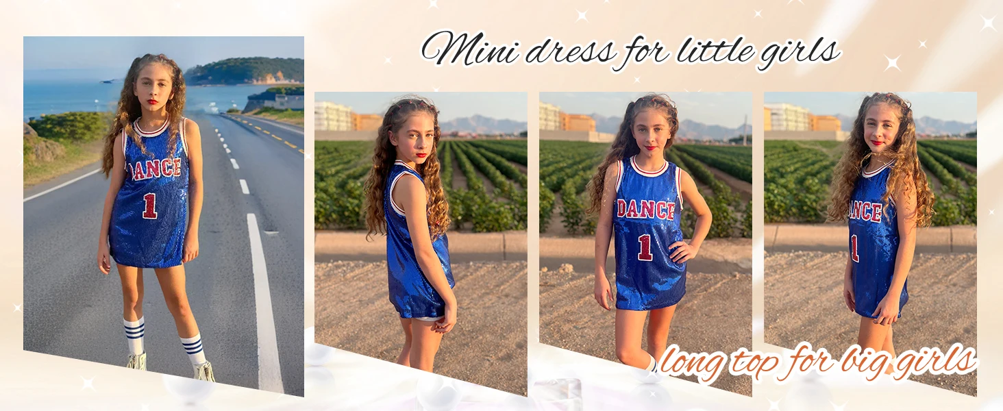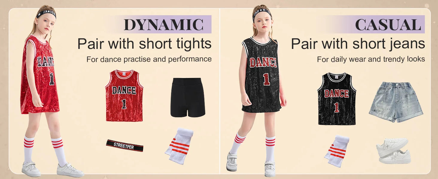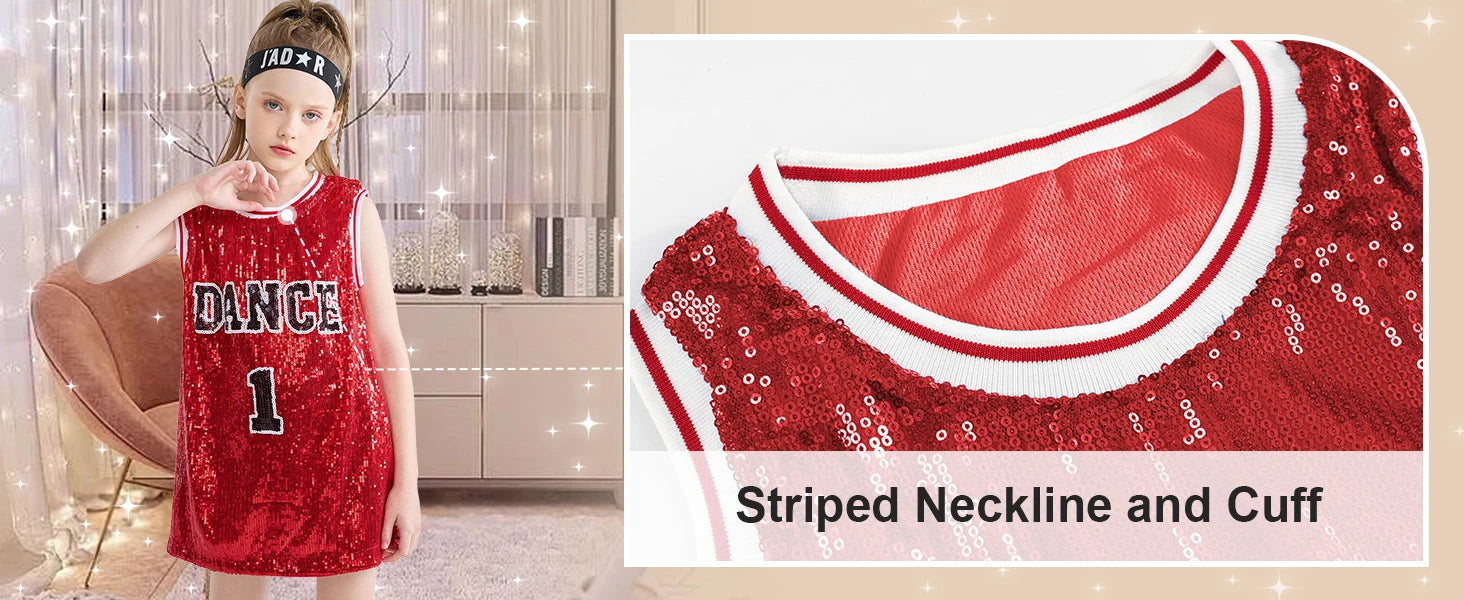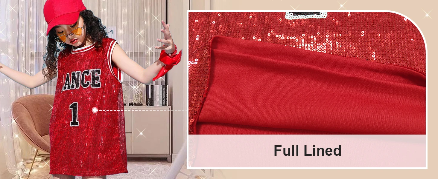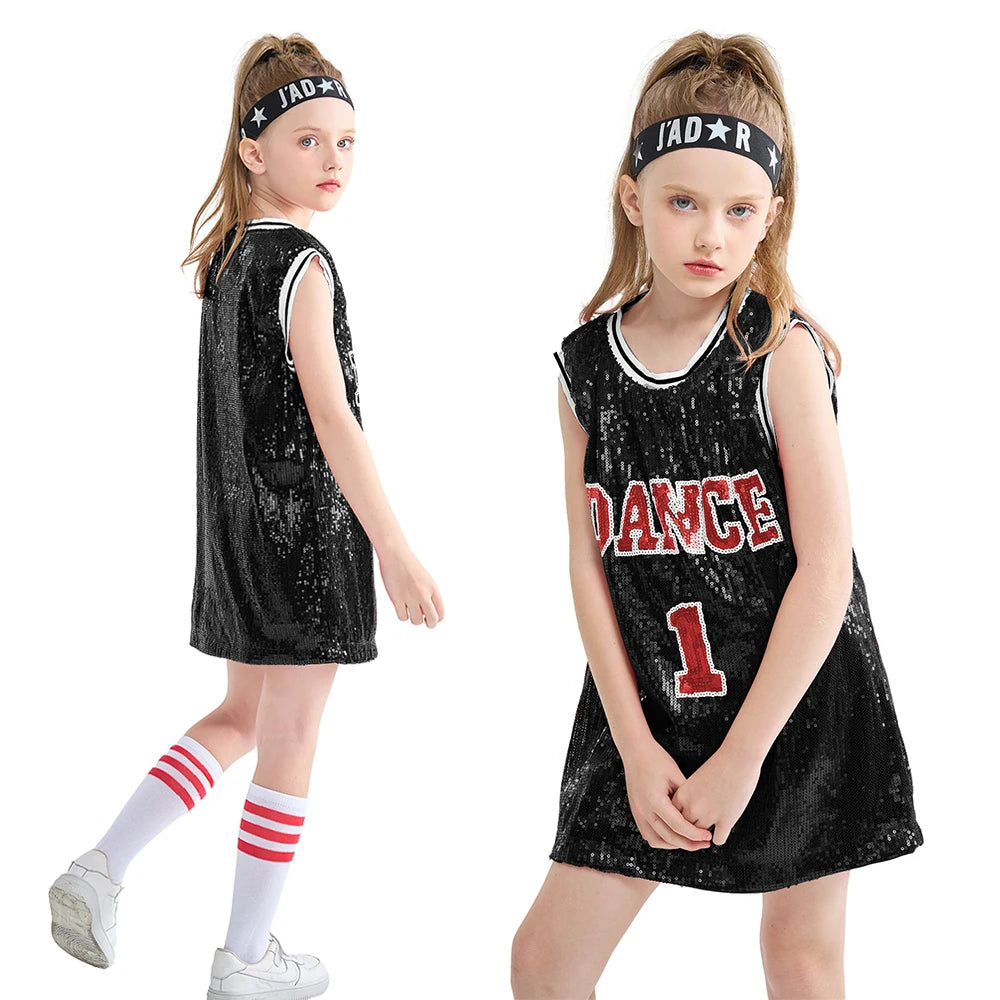 LOlanta Girls Hip Hop Dance Clothes Kids Jersey Sequin Dress Long Tank Top Jazz Cheerleading T-Shirt