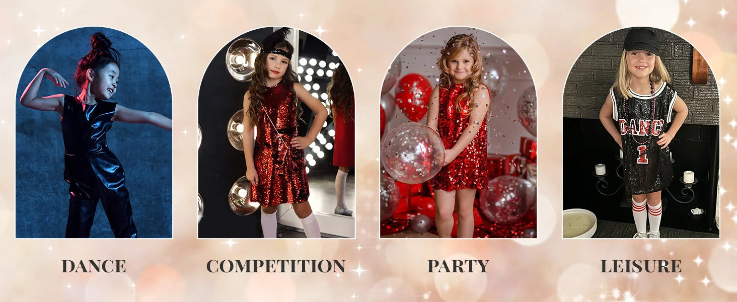 * You're ready for any party or club! Also beautifully glitters under stage lights for dance, theatre, and choir performances! Occasions: hip-hop, rock, jazz, hot bar dancing, clubbing and so on