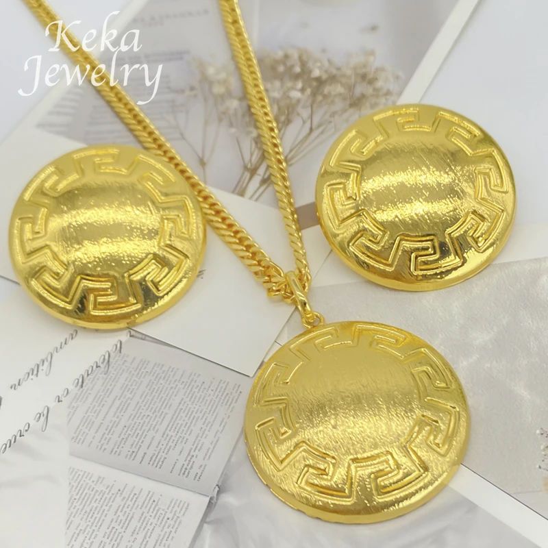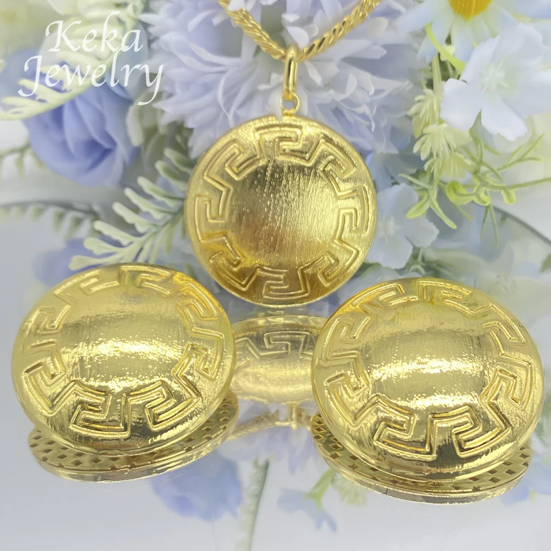ltaly 18K Gold Plated Delicacy Jewelry Set Women Fashion Earrings Pendant Circular Pattern Desigh Wedding America Party Jewelry