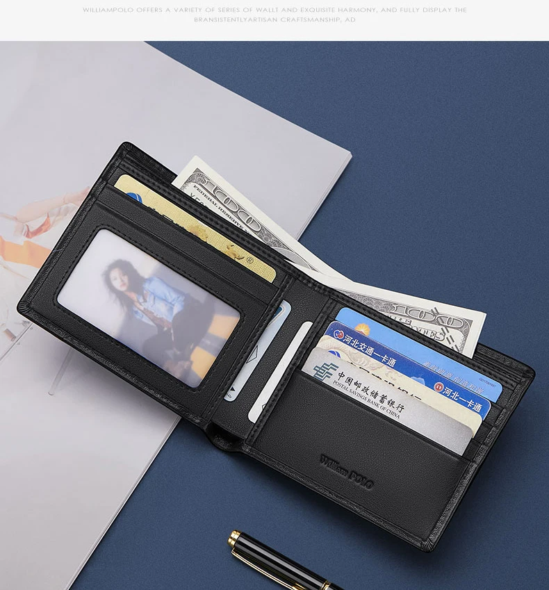 Luxury men's short leather wallet 2024 new large capacity multi-card money clip boys gift thin money clip