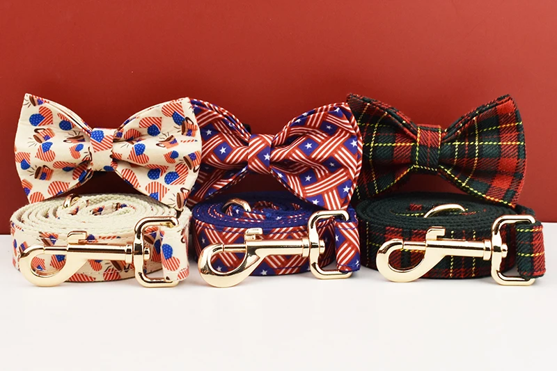 Luxury Personalized Dog Collar Leash set custom,custom Logo detachable dog bow tie collar designer dog collar and leash set