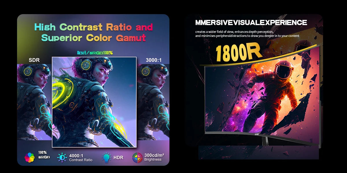 LXZ Curved 32 Inch Gaming Monitor 1800R, 2K QHD 165hz Frameless Display 99% sRGB, 178°Wide Viewing Angle, Display Port HDMI