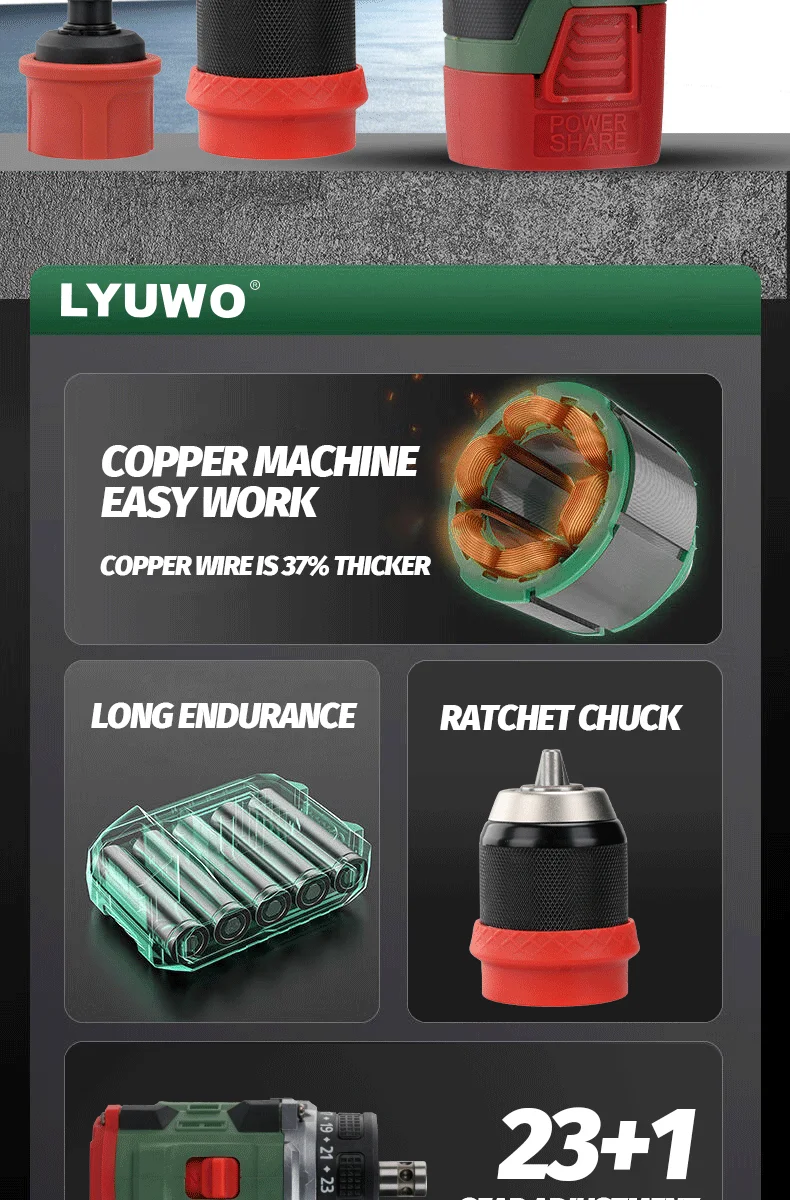 LYUWO Brushless Cordless Electric Screwdriver Kit with Fast-Charging Battery,LED Work Light&Ergonomic Grip(Drill/Driver 2-in-1)