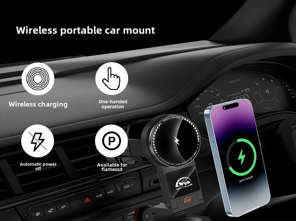 Magnetic Wireless Charger Car Phone Holder 15W Fast Charging Air Outlet Hook Mount Stand for Magsafe IPhone 16 Earphone Iwatch