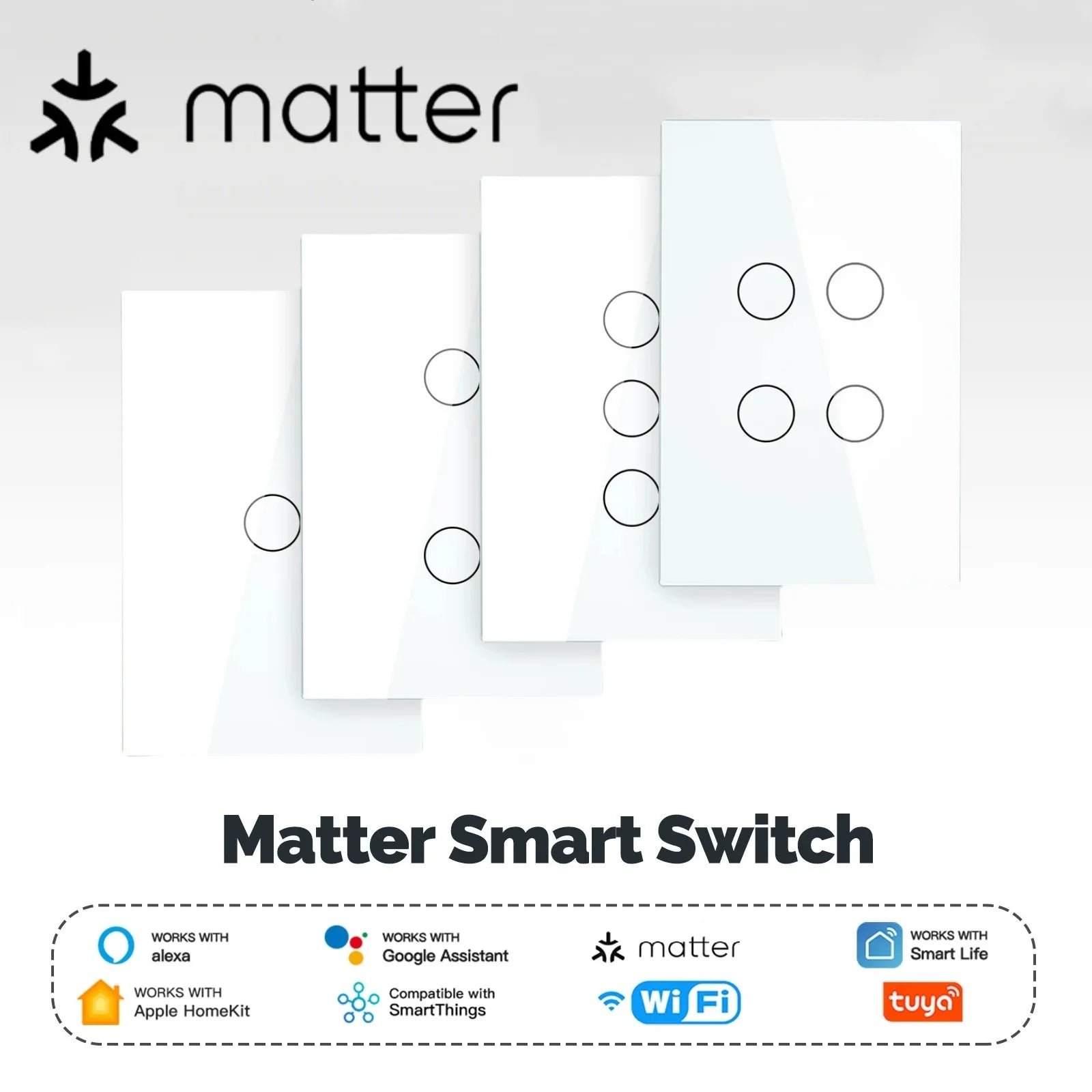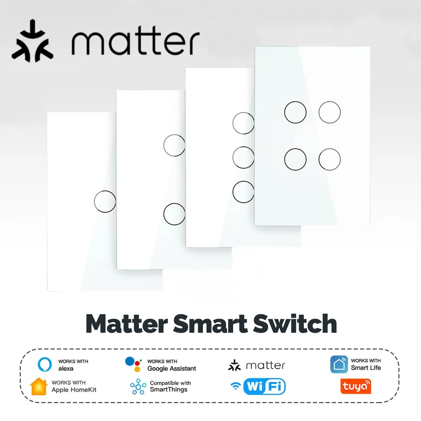 Matter Smart Switch Matter Light Switch Wifi Wall Switch Neutral Wire/No Neutral Wire 1/2/3/4 Gang US Touch Wall Light