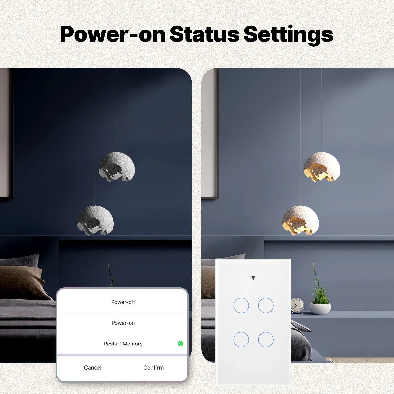 No more worries about the status after an unexpected power outage. Set the power-on status to on, off or power-off memory through the APP to ensure that every use meets your expectations.