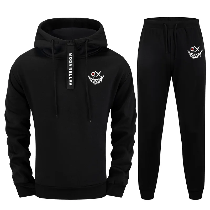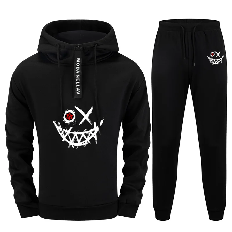 ✔ 3 Bold Colors - ⚫⚪🔴 Black/White/Red hoodie + matching black joggers