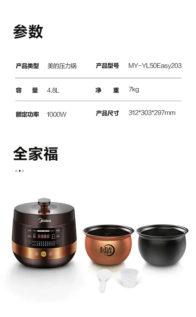 Midea household large-capacity intelligent high-pressure rice cooker multi-function electric pressure cooker