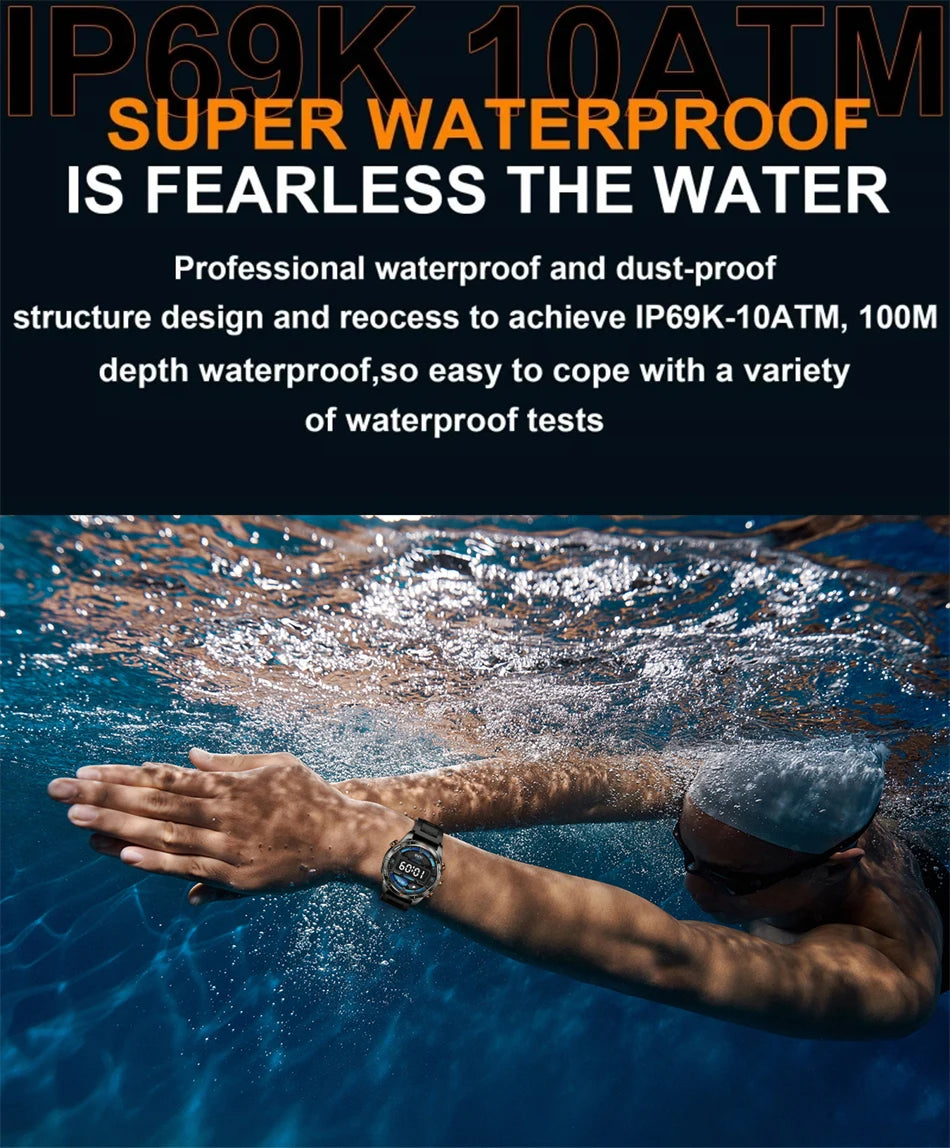 Military Smart Watch Men 10ATM Waterproof 1.46" AMOLED Screen LED Flashlight 515mAh Battery Heart Rate Sport BT Call Smartwatch