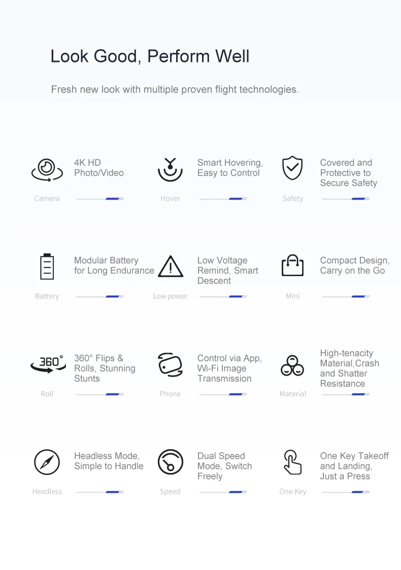 6. Designed for beginners with a number of one-button operation, only one button can easily achieve a one-button landing, abandon the previous cumbersome control, more worry.